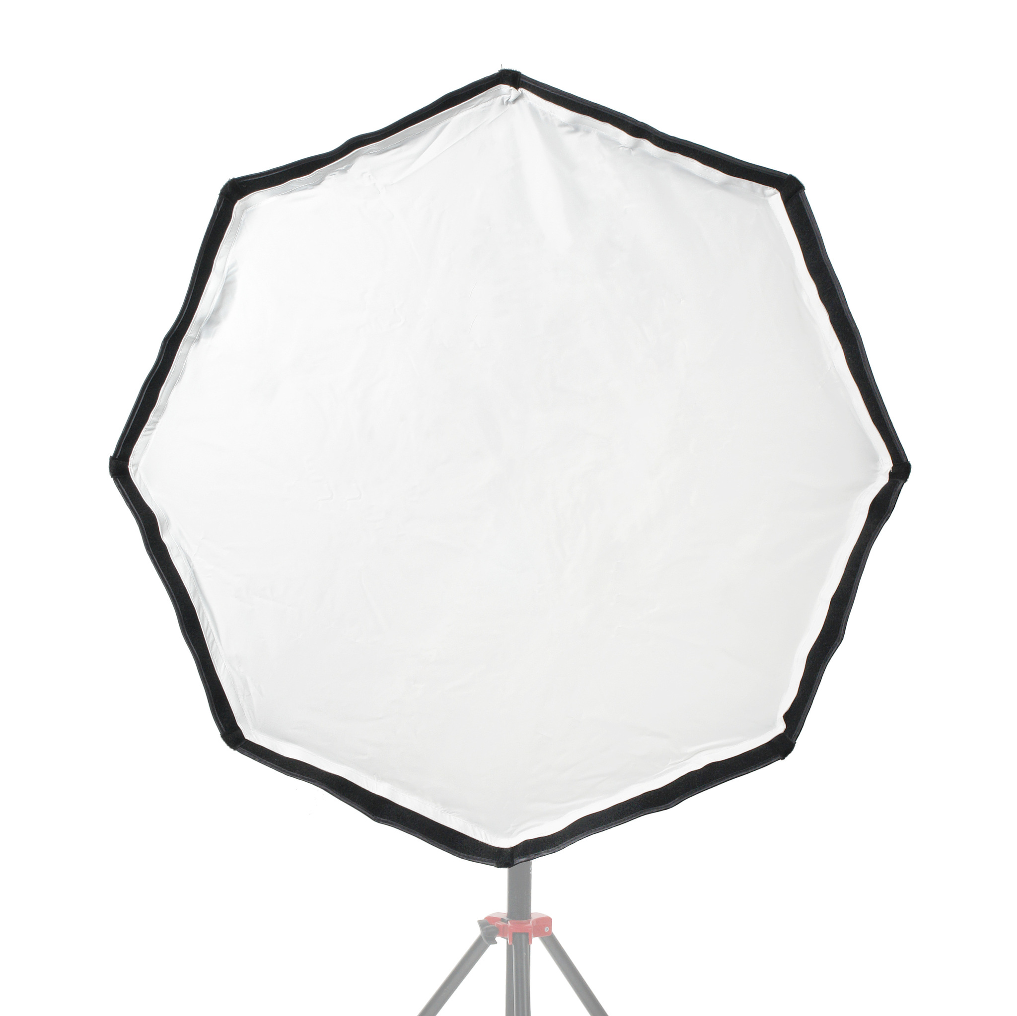 Купол-рефлектор софтбокса изготавливается из специальной синтетической ткани с серебристой светоотражающей поверхностью (производство Южная Корея). Жаропрочная ткань выдерживает нагрев от светодиодных осветителей до 500 вт. Спицы одним концом вставлены в карманы внутри тканевого рефлектора, а другим закреплены в кольце-адаптере. Карманы прошиты на всю длину спицы, что обеспечивает равномерное натяжение тента.