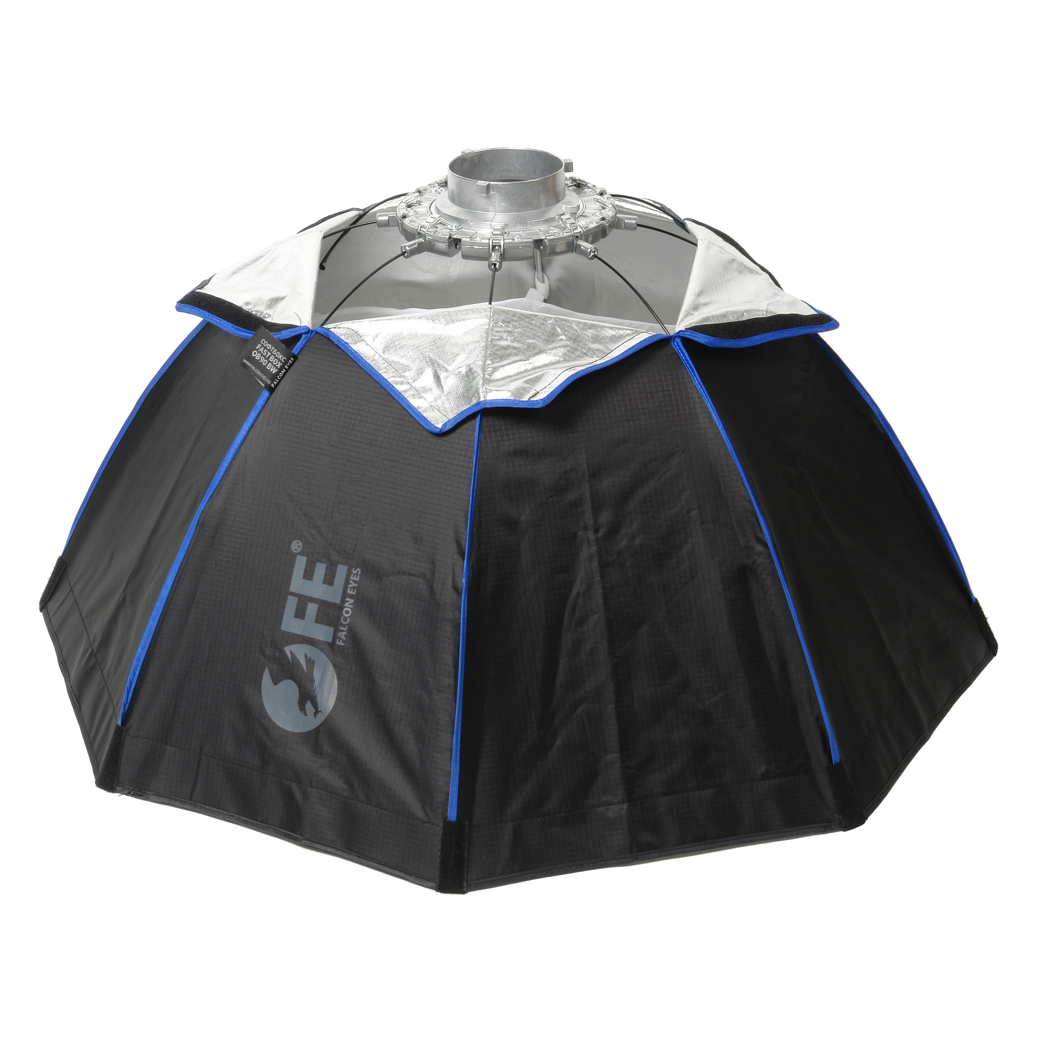 Falcon Eyes FastBox OB90 BW — быстроскладной восьмиугольный софтбокс (октобокс) Ø90 см. Мобильный софтбокс весом 1 кг разбирается и складывается за пару минут и подходит для использования в пленэрных фото- и видеосъемках. Рассчитан на длительную эксплуатацию, благодаря упругим спицам и литому алюминиевому хвостовику со сменным металлическим адаптером для байонета типа Bowens. Используется с флуоресцентными и светодиодными источниками постоянного света.