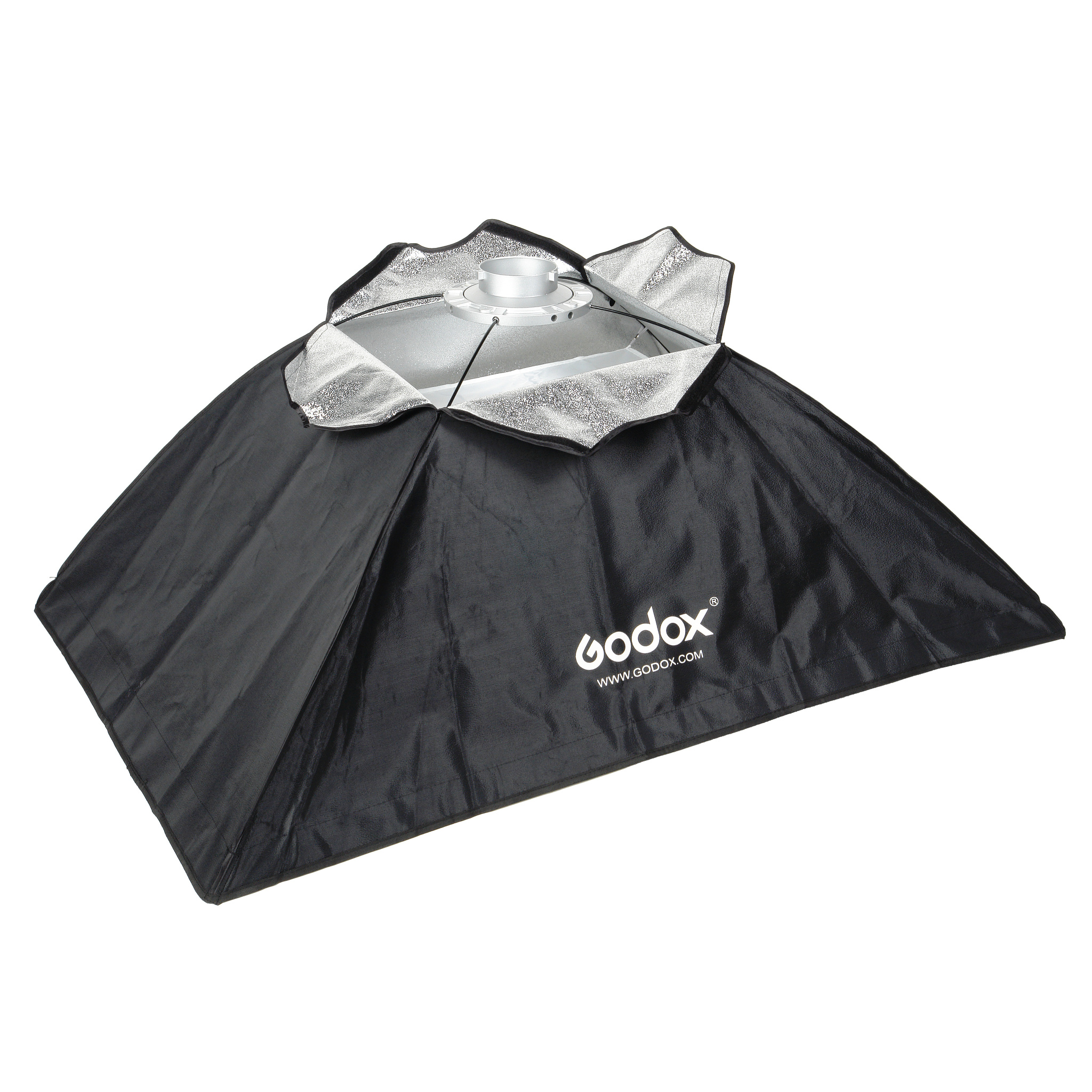 Софтбокс Godox SB-FW80120 (80 х 120 см) складной, предназначен для формирования мягкого рассеянного освещения без резких теней и бликов. Софтбокс состоит из отражателя, внешнего и внутреннего рассеивателя, несущего каркаса (литой алюминиевый адаптер и сменное байонетное кольцо на Bowens). Для установки Godox SB-FW80120 на осветительные приборы с другим байонетом можно использовать переходные кольца.