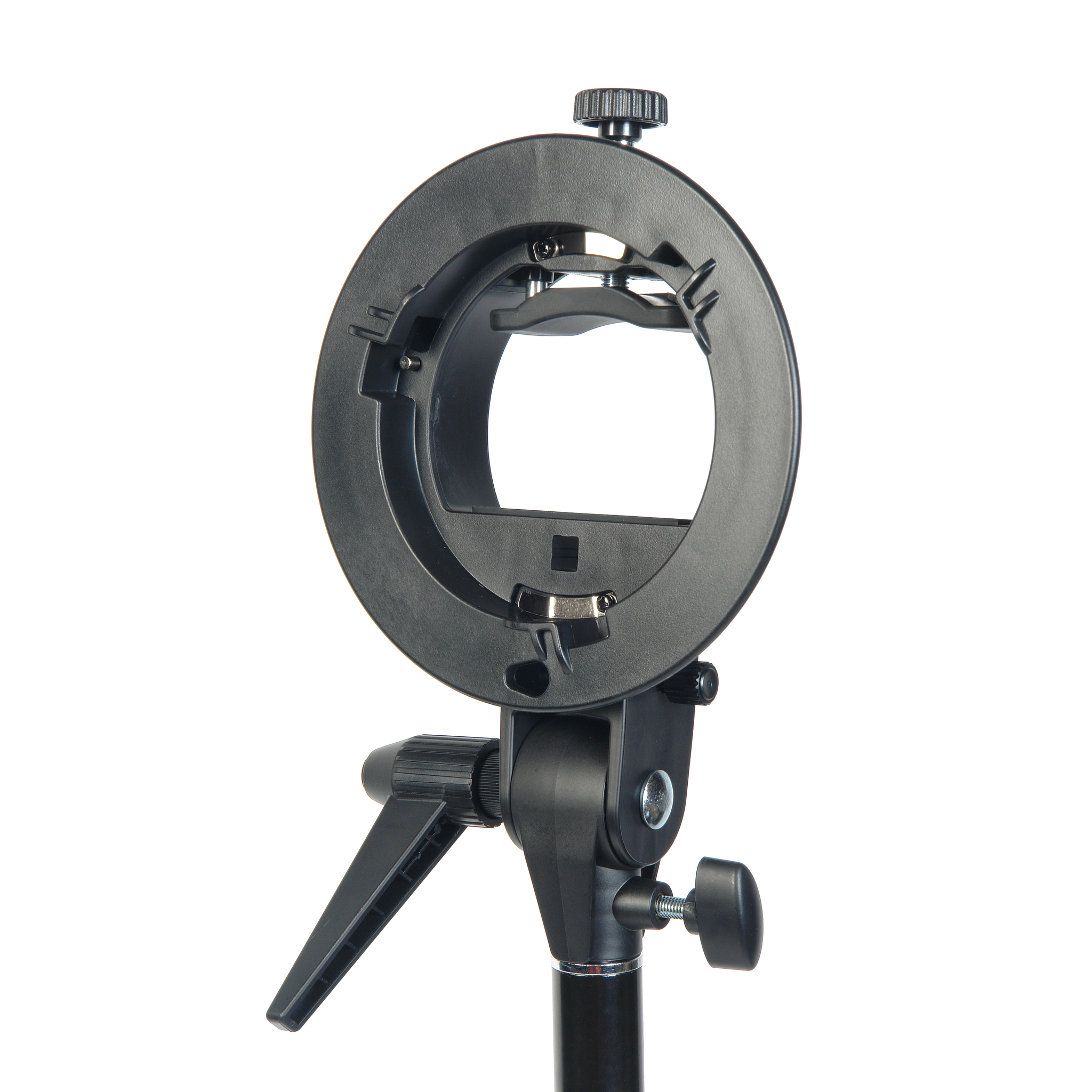 Софтбокс легко и быстро раскладывается по принципу лайт-диска: его тканевые стенки натянуты на упругие металлические ребра. Софтбокс монтируется на компактном кронштейне-адаптере S и не требует предварительной сборки, поэтому сразу же готов к работе. Кронштейн-адаптер S устанавливается на стандартную стойку 5/8 дюйма и позволяет плавно регулировать угол наклона вспышки в пределах 180°. Сборка и установка комплекта займет не несколько минут.