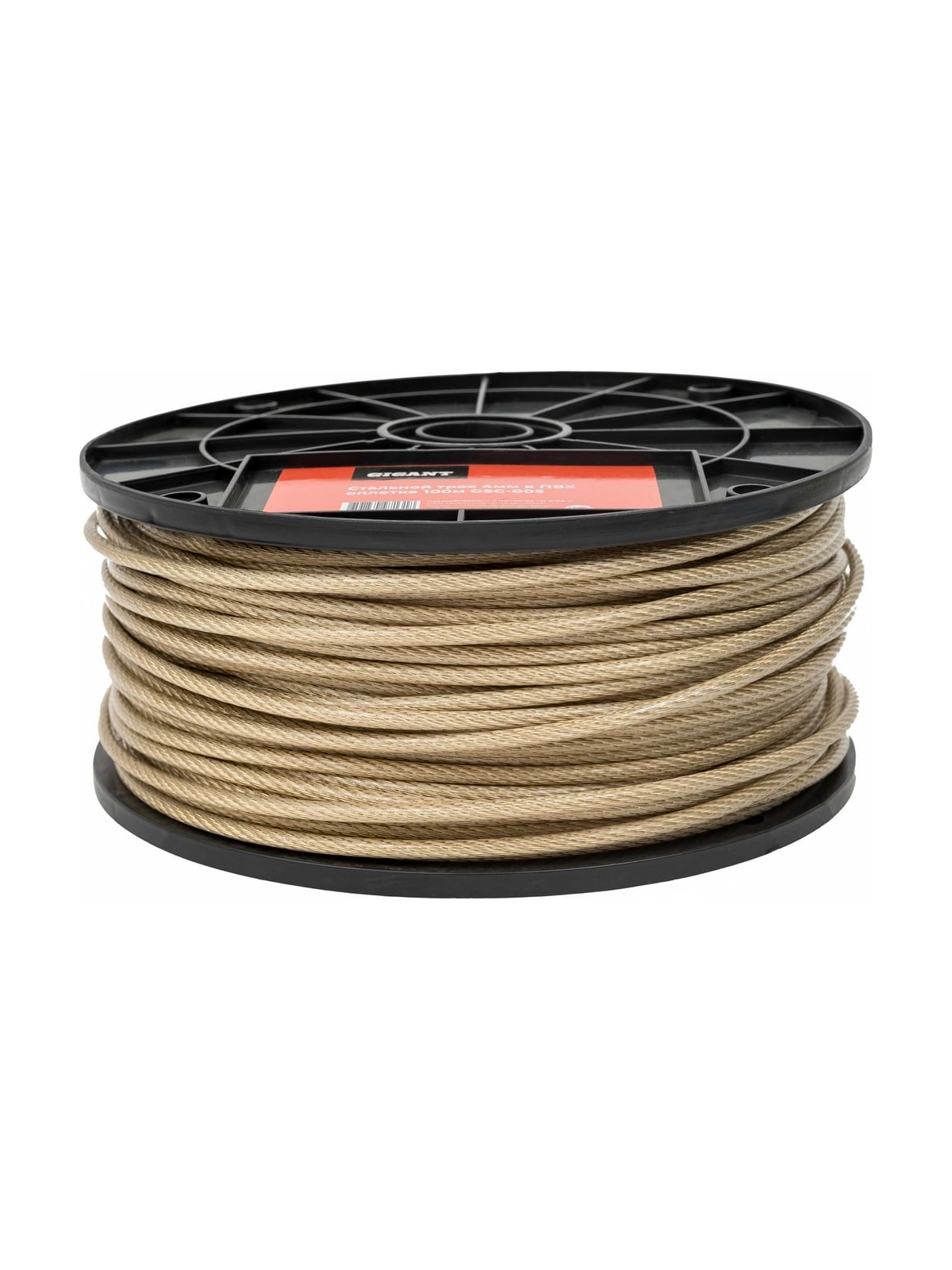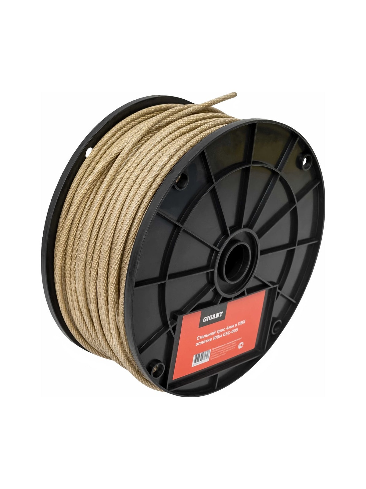 Стальной трос Gigant 4мм в ПВХ оплетке 100м GSC-005 предназначен для организации подвесок и растяжек при установке антенн, прокладке уличных кабелей, при строительных работах, в быту и садоводстве. Трос не предназначен для подъема и перемещения грузов. Благодаря ПВХ оплетке удается значительно повысить срок службы изделия, обеспечивая его герметичность и защиту от коррозии. Поставляется на пластиковой катушке для удобства хранения и перемещения. Рабочая прочность: 1.46 кН Разрывная прочность: 8.8 кН Конструкция троса: 6X7+FC Вес: 6,5 кг Диаметр стальной части троса 4 мм, с учетом оплетки 5 мм.