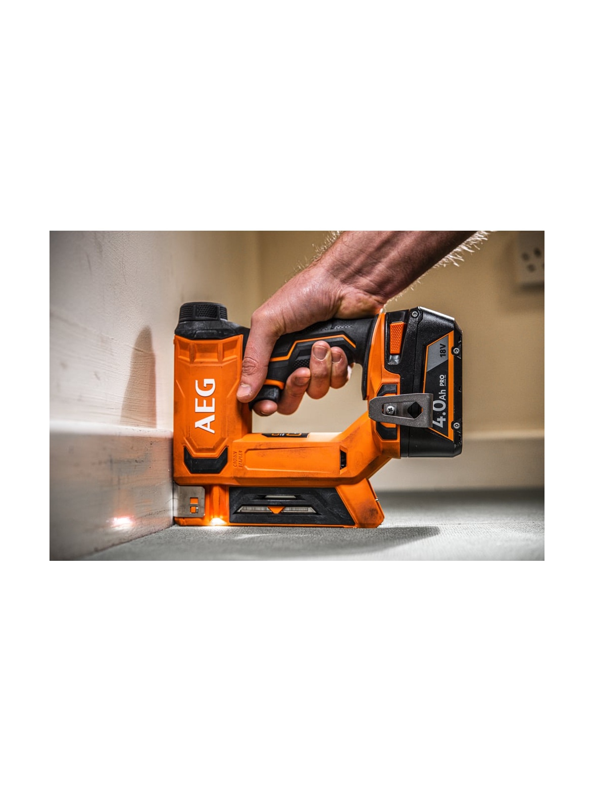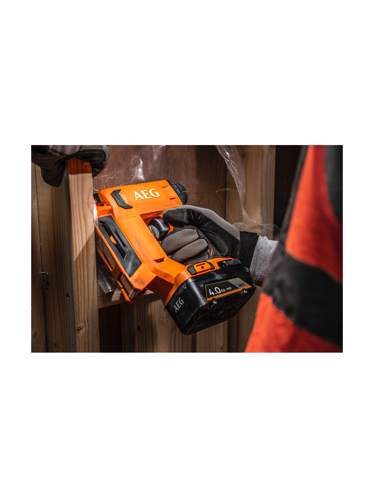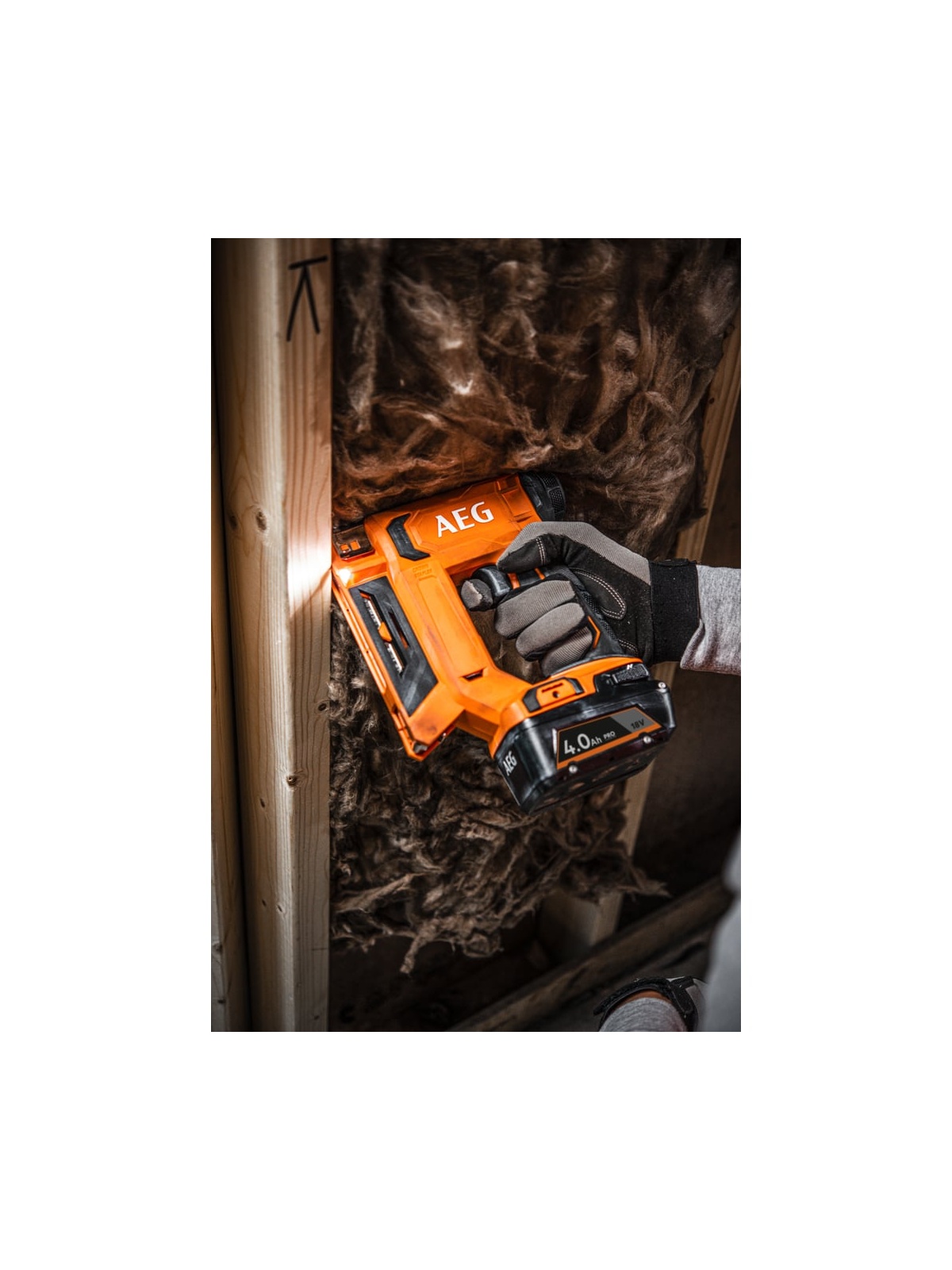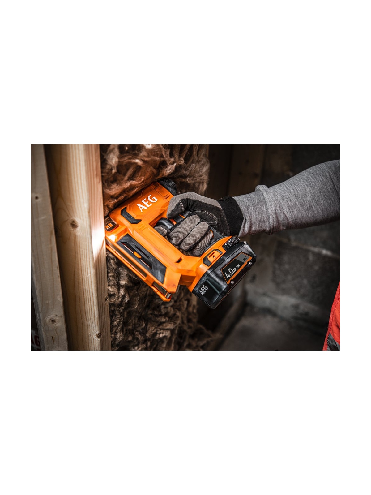 Мощный степлер 18 В создан для снижении утомляемости за счет устранения повторяющегося использования ручного инструмента. Забивание скоб шириной 9,5 мм и длинной от 6 мм до 14 мм позволяет использовать инструмент для решения широкого спектра задач. Регулировка глубины забивания позволяет уверенно пользоваться инструментом без риска повреждения поверхности материала. Технология компрессионного привода обеспечивает удобство автоматизации и снижает утомляемость пользователя. Механизм "Нажми и забей" обеспечивает полный контроль над положением скобы, поскольку ударный механизм не сработает, пока носик инструмента не будет надежно прижат к поверхности материала. Легкая загрузка магазина, рассчитанного на 88 скоб. Забивает до 6000 скоб на одной зарядке аккумулятора 4.0 Ач (в комплект не входит). Светодиодная подсветка поверхности материала. Являясь частью системы PRO18V, инструмент совместим с любым аккумулятором PRO18V. Мощный степлер 18 В предназначен для вбивания скоб в мягкие материалы, такие как дерево.