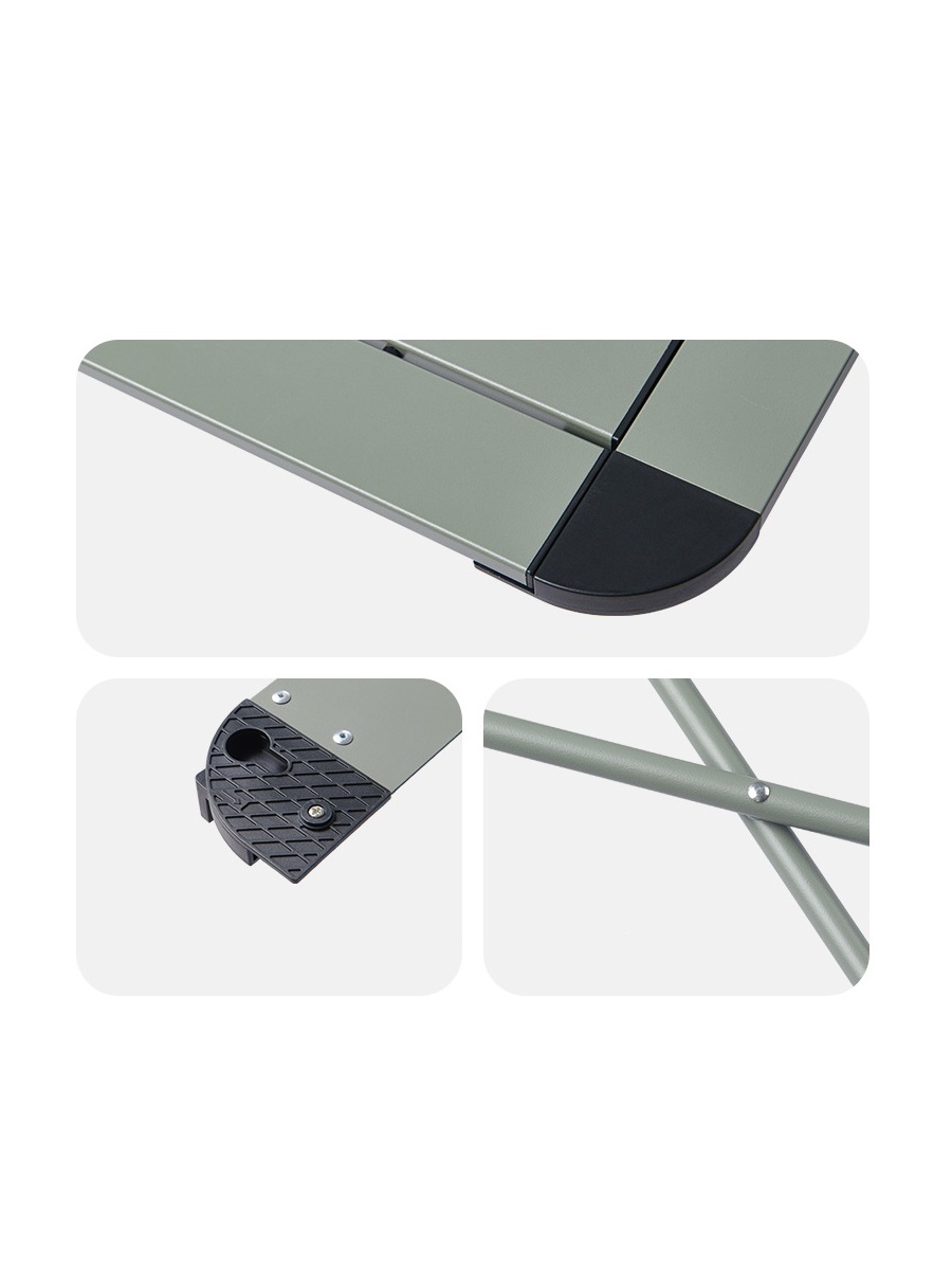 - Легкость и портативность: Вес всего 2-3 кг в зависимости от размера. В сложенном виде стол превращается в компактный сверток, который легко помещается в багажник или крепится к рюкзаку. - Прочность и надежность: Каркас из алюминиевого сплава 6063 и X-образная конструкция обеспечивают устойчивость и выдерживают нагрузку до 50 кг. - Стильный современный дизайн: Доступен в нескольких популярных цветах, включая классические и модные двухцветные варианты. - Быстрая сборка: Стол раскладывается и складывается за считанные секунды без использования инструментов. - Защитное покрытие: Поверхность столешницы имеет многослойное защитное покрытие (антиоксидантное, анодированное, противоскользящее), которое устойчиво к царапинам, влаге и УФ-излучению.