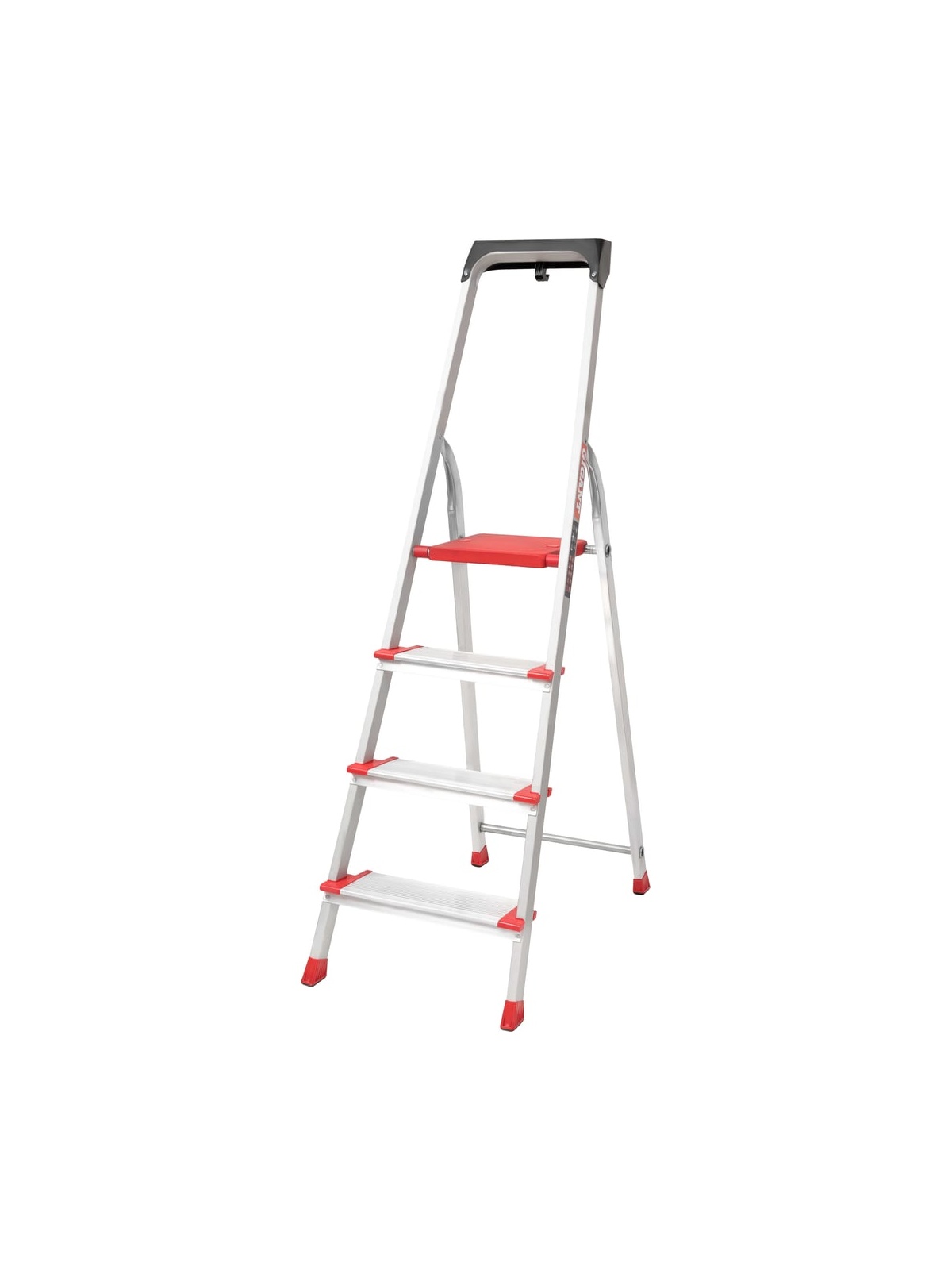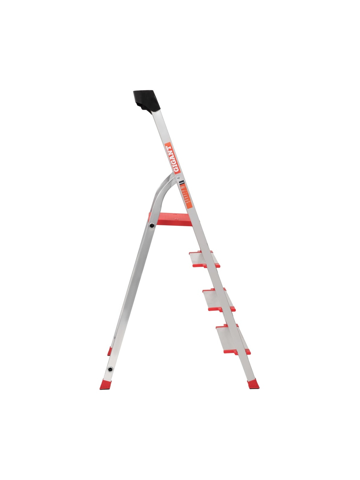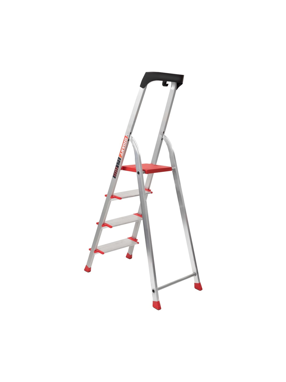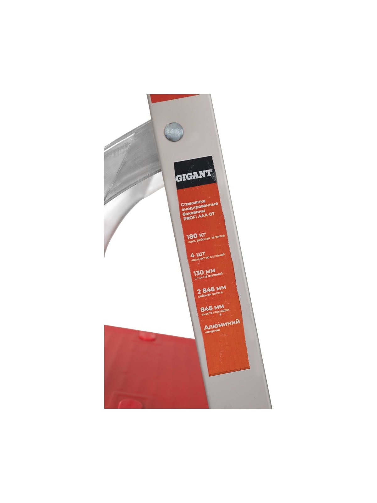 Стремянка Gigant анодированные боковины, 4 ступени, PROFI AAA-07 имеет боковины из анодированного алюминия, профилированные широкие ступени 125 мм. Ступени надежно закреплены шестикратными заклепочными соединениями с боковинами. Конструкция устойчива, благодаря большими опорными наконечниками, площадь которых увеличена на 100%, по сравнению со стандартными. Имеется полка с крюками для ведра и углублениями под инструменты.