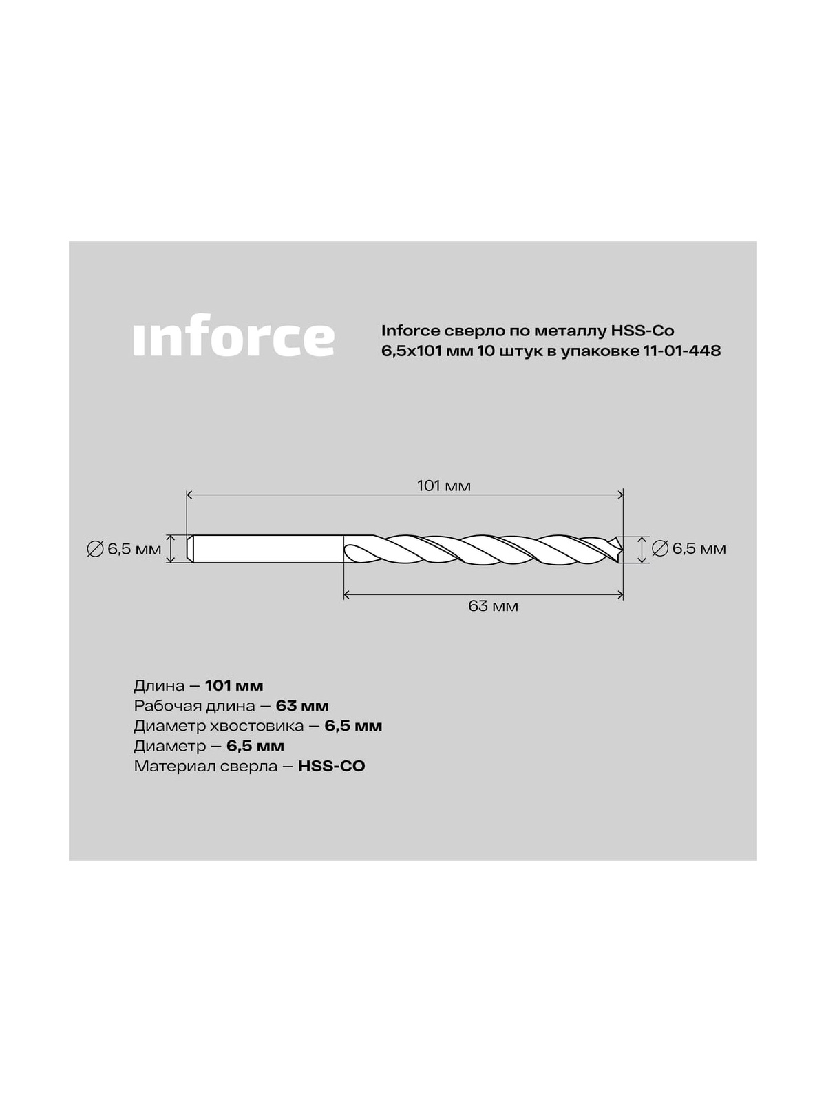 Сверло HSS-CO Inforce 11-01-448применяется для получения сквозных и глухих отверстий в металлических заготовках. Изготовлено из высококачественной быстрорежущей стали, легированной кобальтом. Сверло имеет высокую износостойкость и жаропрочность. Предназначено для работ повышенной сложности.