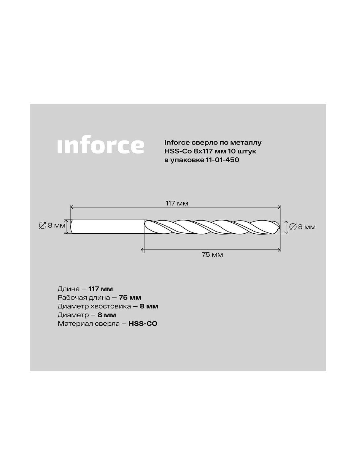Сверло HSS-CO Inforce 11-01-450применяется для получения сквозных и глухих отверстий в металлических заготовках. Изготовлено из высококачественной быстрорежущей стали, легированной кобальтом. Сверло имеет высокую износостойкость и жаропрочность. Предназначено для работ повышенной сложности.