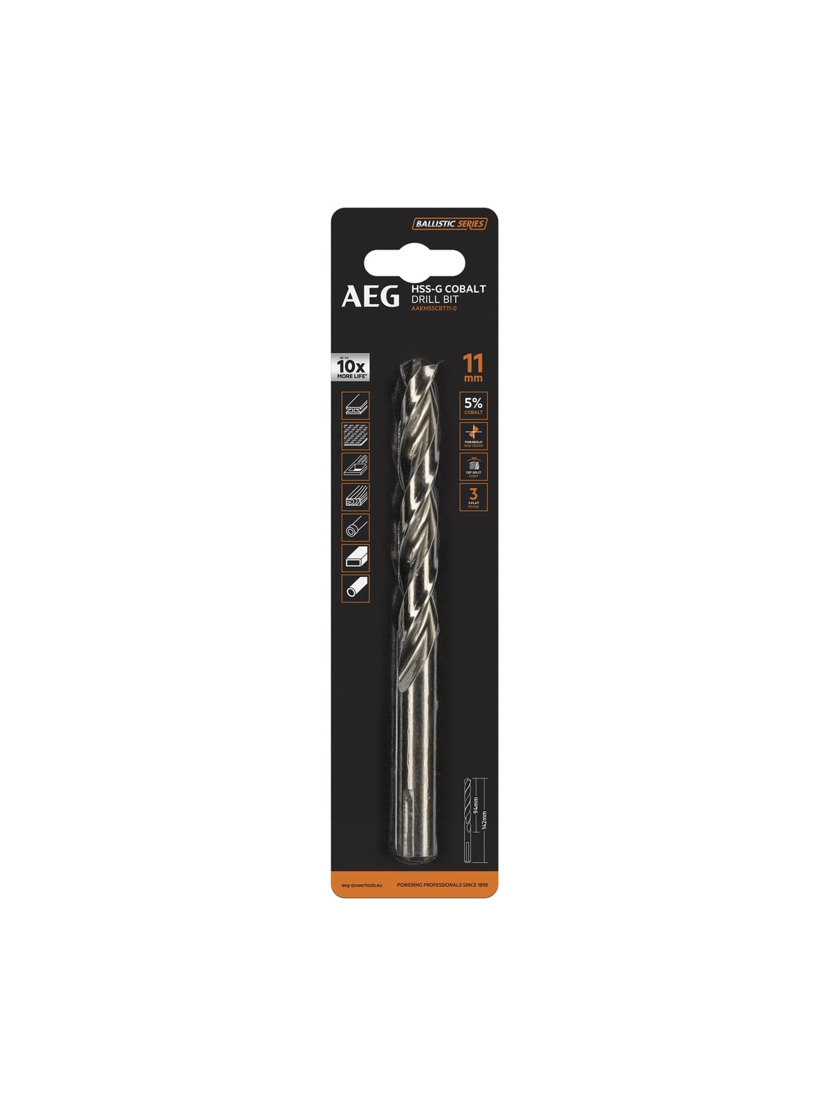 Сверло HSS-Co (11х94х142 мм) AEG AAKHSSCBT11-0 4932479341 предназначено для дрелей, шуруповертов и сверлильных станков. Применяется для выполнения глухих/сквозных отверстий в металлических заготовках, древесине, пластике, а также использования в специальных условиях. Оснастка изготовлена из быстрорежущей стали HSS-G c добавлением 5% кобальта, соответствует стандарту DIN 338, что позволяет выполнять сверление как в мягких, так и в твердых материалах. Специальная форма наконечника и заточка под углом 135 градусов обеспечивают точное засверливание и быстрое начало сверления. Точная шлифовка и спиралевидные канавки обеспечивают простое, эффективное удаление стружки и лучшее охлаждение благодаря беспрепятственному доступу смазывающей жидкости к наконечнику сверла. Внимание, изображение товара может отличаться от реального! Верные параметры указаны в технических характеристиках товара.