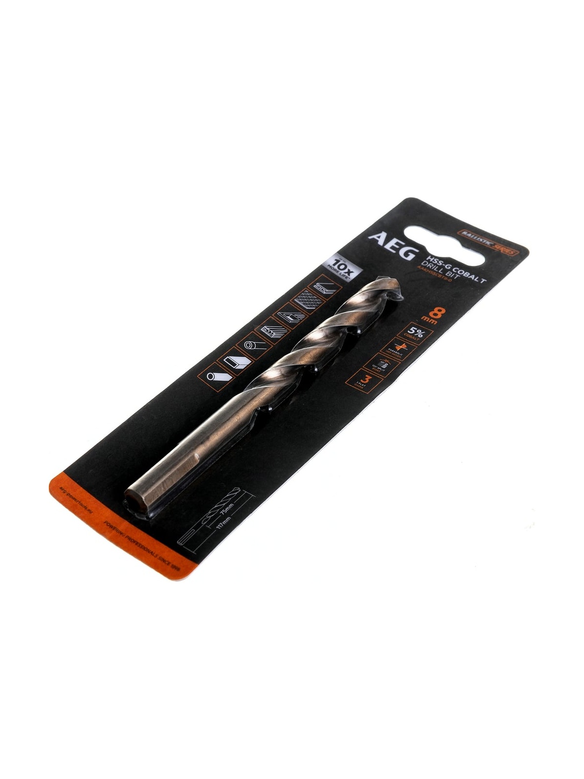 Сверло HSS-Co (8х75х117 мм) AEG AAKHSSCBT8-0 4932479337 предназначено для дрелей, шуруповертов и сверлильных станков. Применяется для выполнения глухих/сквозных отверстий в металлических заготовках, древесине, пластике, а также использования в специальных условиях. Оснастка изготовлена из быстрорежущей стали HSS-G c добавлением 5% кобальта, соответствует стандарту DIN 338, что позволяет выполнять сверление как в мягких, так и в твердых материалах. Специальная форма наконечника и заточка под углом 135 градусов обеспечивают точное засверливание и быстрое начало сверления. Точная шлифовка и спиралевидные канавки обеспечивают простое, эффективное удаление стружки и лучшее охлаждение благодаря беспрепятственному доступу смазывающей жидкости к наконечнику сверла. Внимание, изображение товара может отличаться от реального! Верные параметры указаны в технических характеристиках товара.