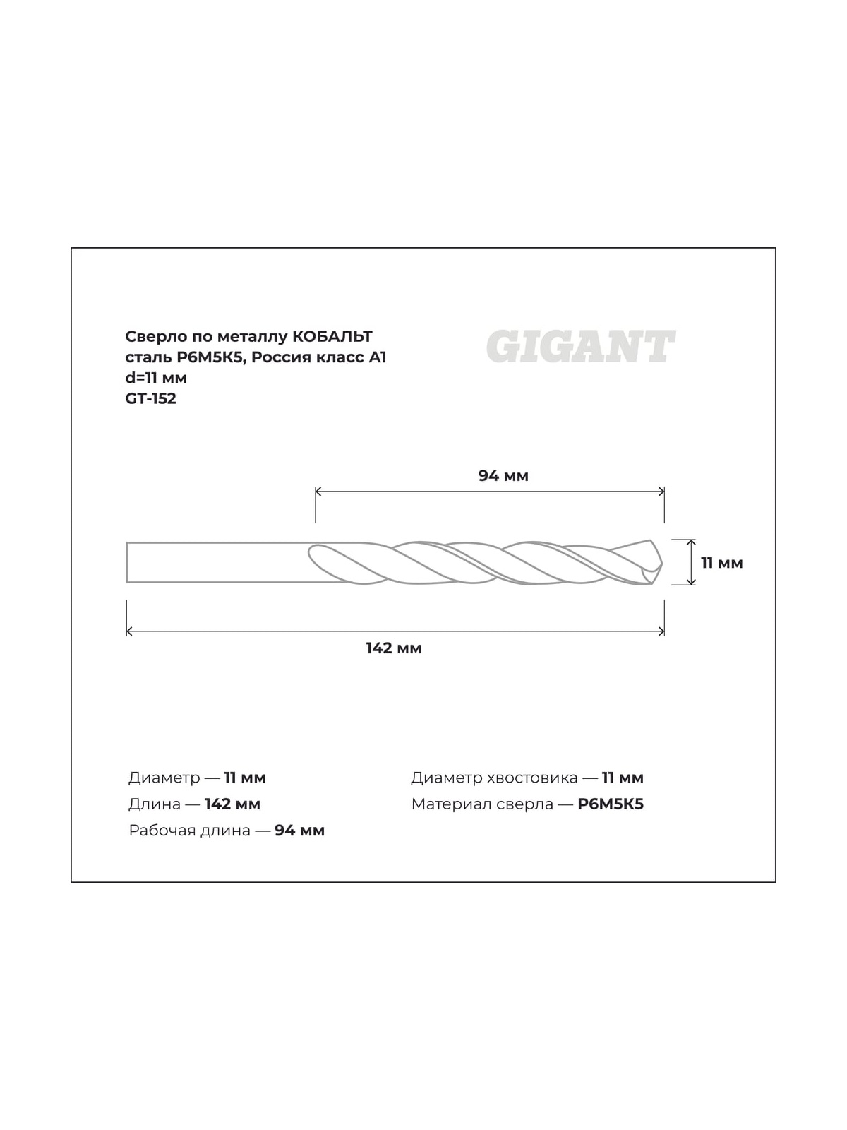 Сверло по металлу КОБАЛЬТ (11х94х142 мм; Р6М5К5; класс А1) Gigant GT-152 предназначено для выполнения сквозных/глухих отверстий в металлических заготовках из легированной, углеродистой, нержавеющей, труднообрабатываемой стали, цветных металлах, сером чугуне и пластмассе. Изготовлено из быстрорежущей инструментальной стали с добавлением 5% кобальта для повышения термостойкости и износостойкости. Обладает повышенной производительностью, имеет оптимальные углы заточки и выполнено из высококачественных быстрорежущих сталей по специальной технологии. Оснастка имеет цилиндрический хвостовик. Работает в правом направлении. Продукция представлена профессиональными и бытовыми инструментами, имеет доступную цену и высокое качество. При изготовлении товаров Gigant используется современное оборудование и прочные материалы. Производство осуществляется на современных предприятиях России и Азии. Тестирование товаров осуществляется в два этапа, каждая партия инструментов проходит проверку на соответствие стандартам и заявленным техническим характеристикам. Это является залогом качества и надежности готового продукта. Продукция представлена широкой линейкой инструментов. У нас можно приобрести ручной инструмент, строительный, садовый, сантехнический, климатический, крепежный, автогаражный, а также станки, расходные материалы и многое другое.