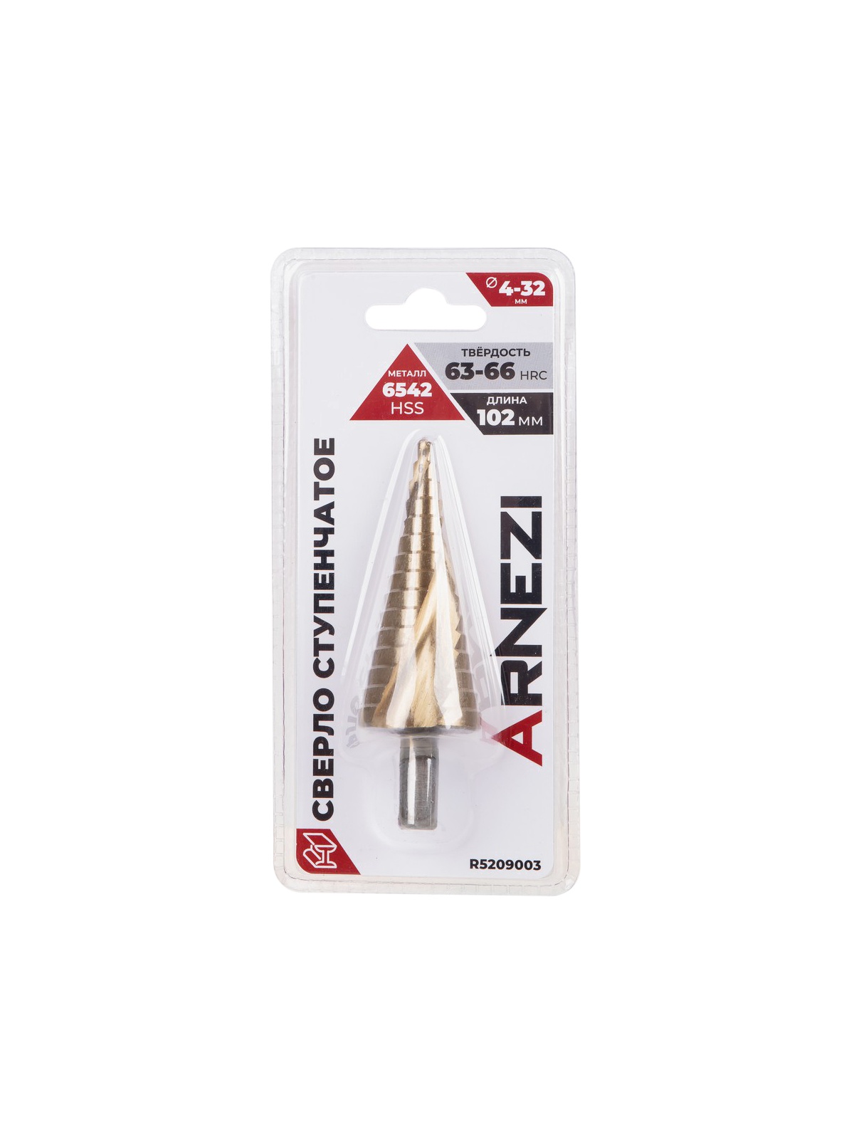 Сверло ступенчатое 4-32мм, HSS, трехгранный хвостовик Arnezi R5209003.