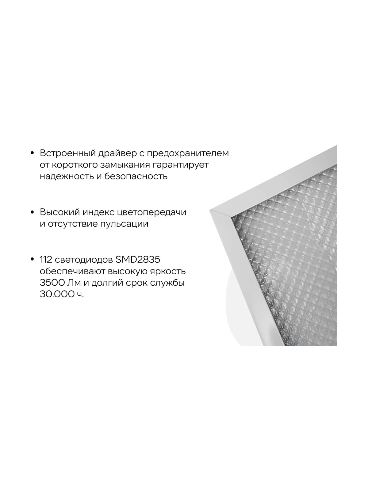 Светодиодная универсальная панель Gigant 36Вт призма 6500К 3500Лм IP40 GL-03-01 подходит для использования в школах, поликлиниках, офисных помещениях, холлах. Поставляется в коробке с драйвером внутри корпуса. Рассеиватель призма. Преимущества и характеристики: Встроенный драйвер с предохранителем от короткого замыкания гарантирует надежность и безопасность. Высокий индекс цветопередачи и отсутствие пульсации. 112 светодиодов SMD2835 обеспечивают высокую яркость 3500 Лм и долгий срок службы 30.000 ч. Светильник защищен от попадания пыли по стандарту IP40. Универсальный монтаж (накладной, встраиваемый, подвесной). Для удобства выведен кабель. Класс энергоэффективности А+ помогает экономить электроэнергию. Температура эксплуатации от -15 до +50 С.