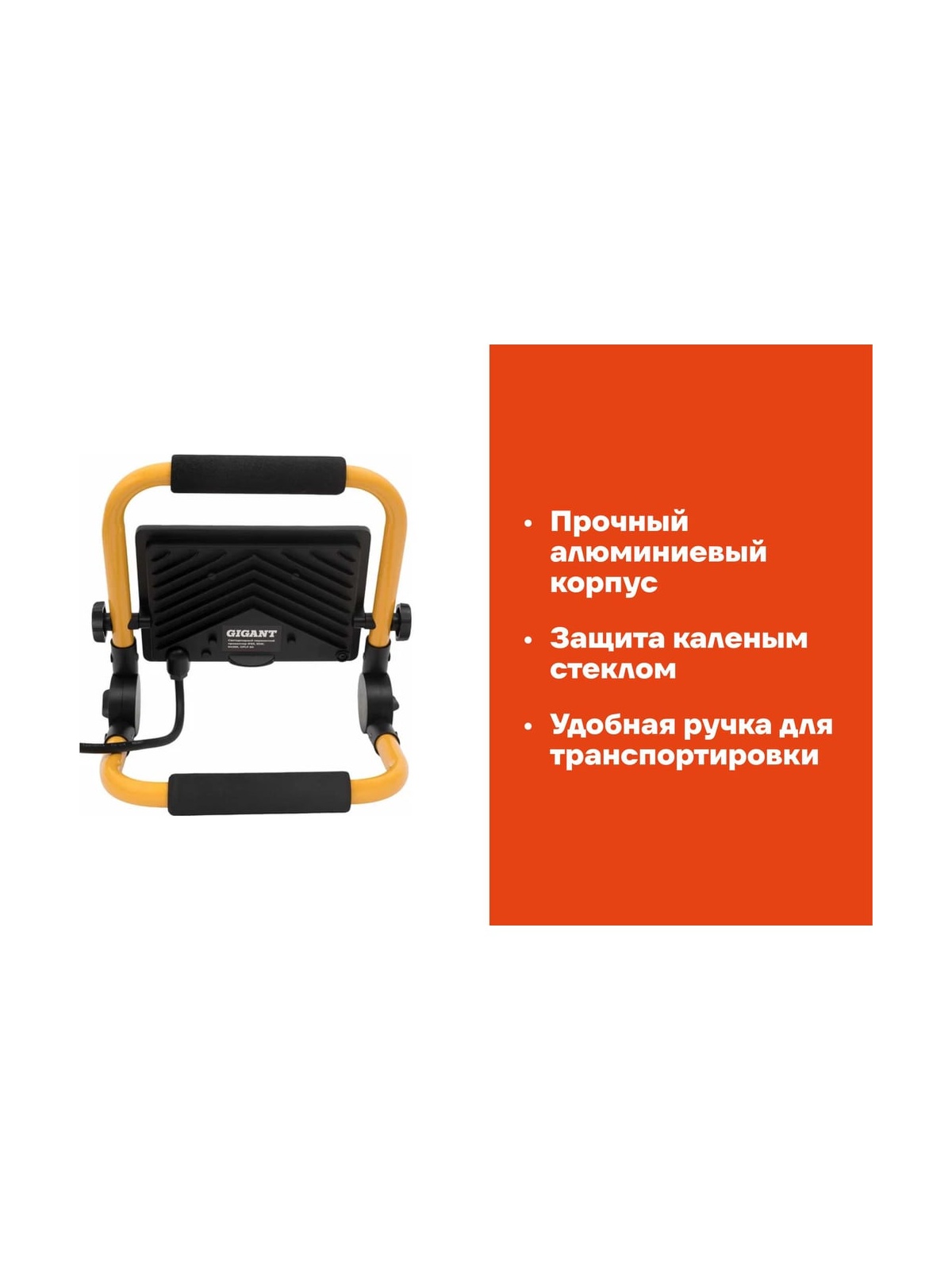 Светодиодный переносной прожектор IP65 50W 6400K Gigant GPLF-50 предназначен для использования на строительных площадках, на улице в темное время суток и в помещениях при отсутствии альтернативного освещения. Частота сети - 50 – 60 Гц. Кол-во светодиодов - 60. Тип светодиодов - SMD 2835. Рабочая температура - от -40 до +40 °C. Класс защиты - IP65. Можно использовать как в помещении, так и на улице. Срок службы светодиодов - 30 000 ч работы. Длина кабеля - 1,9 м.