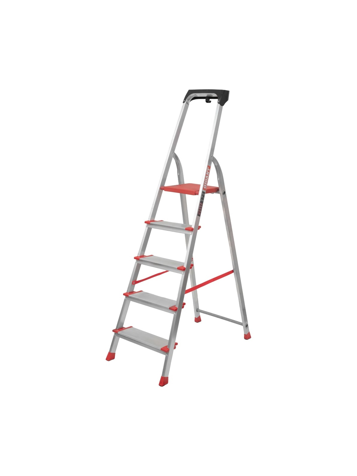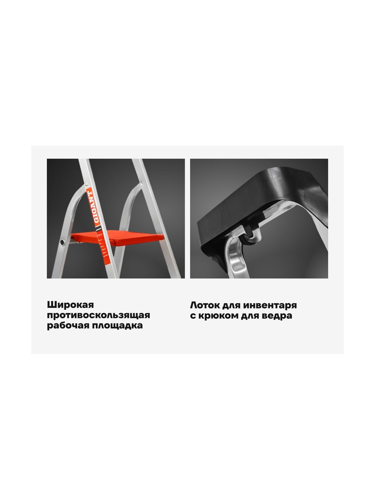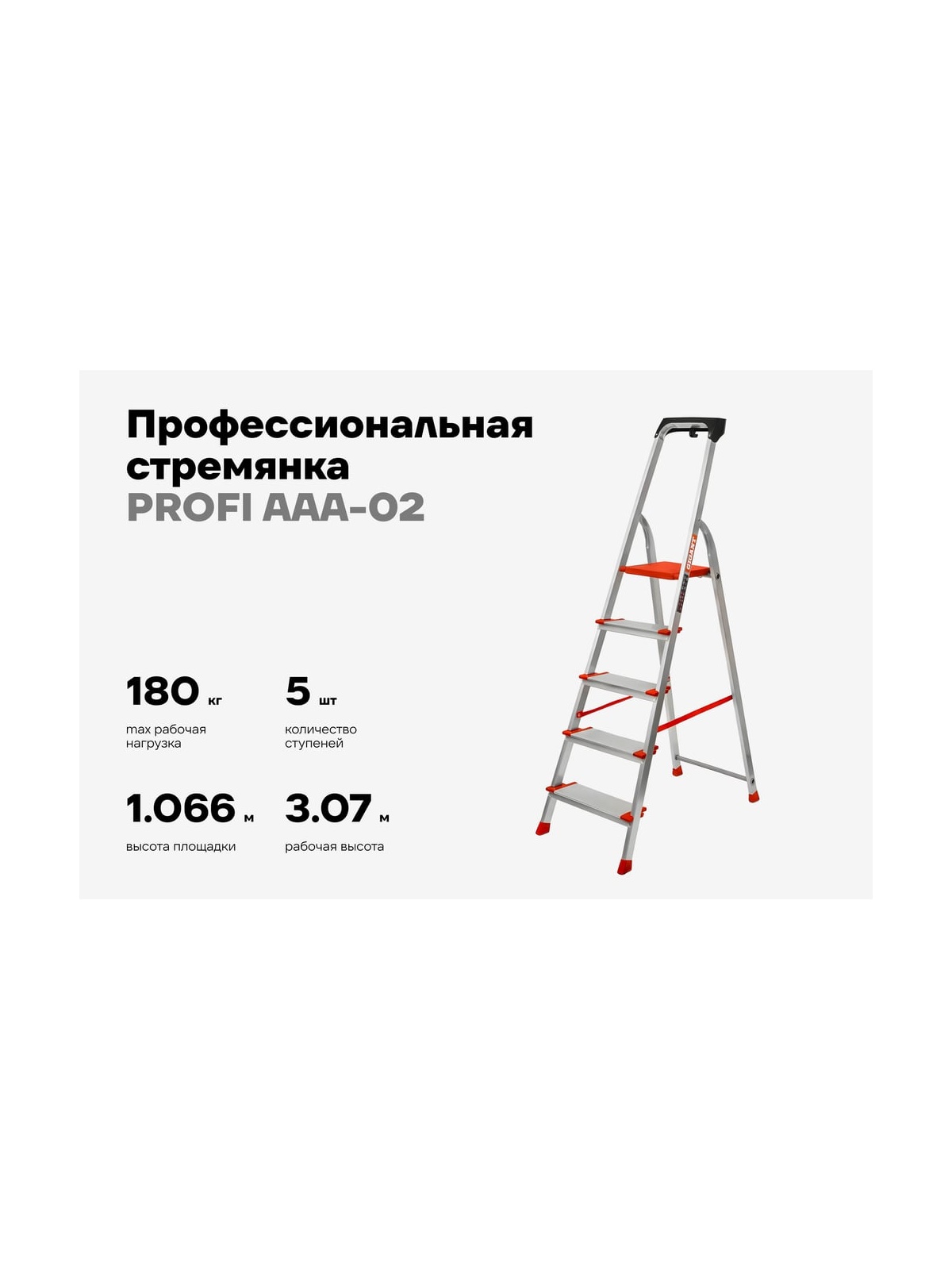 Свободностоящая стремянка Gigant 5 ступеней, PROFI AAA-02 имеет большие противоскользящие наконечники, профилированные ступени шириной 125 мм - для безопасного спуска/подъёма. Охватывающая боковины система безопасных шарниров (4CS) обеспечивает прочность соединений; Широкая противоскользящая рабочая площадка; Высокая дуга защищает от падений; Лоток для инвентаря с крюком для ведра; Ступени надежно соединены с корпусом.