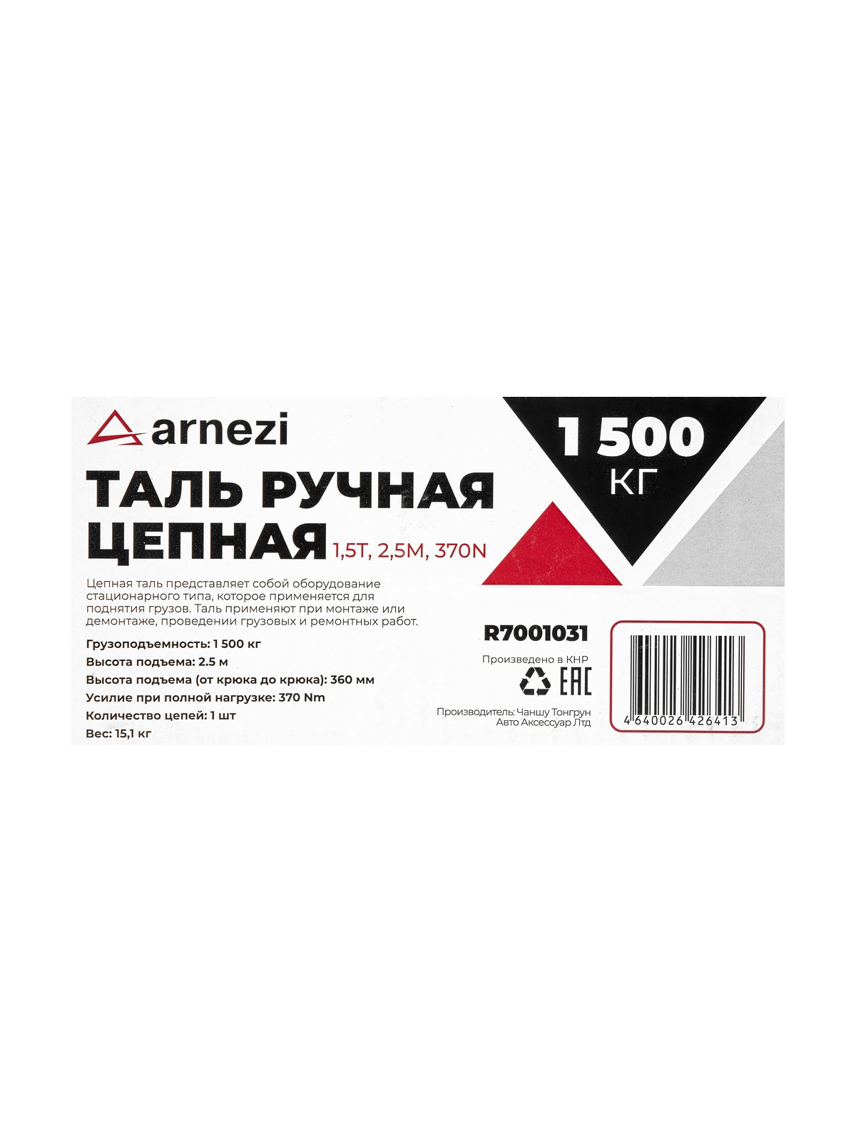 Таль ручная цепная 1,5т, 2,5м, 370N ARNEZI R7001031.