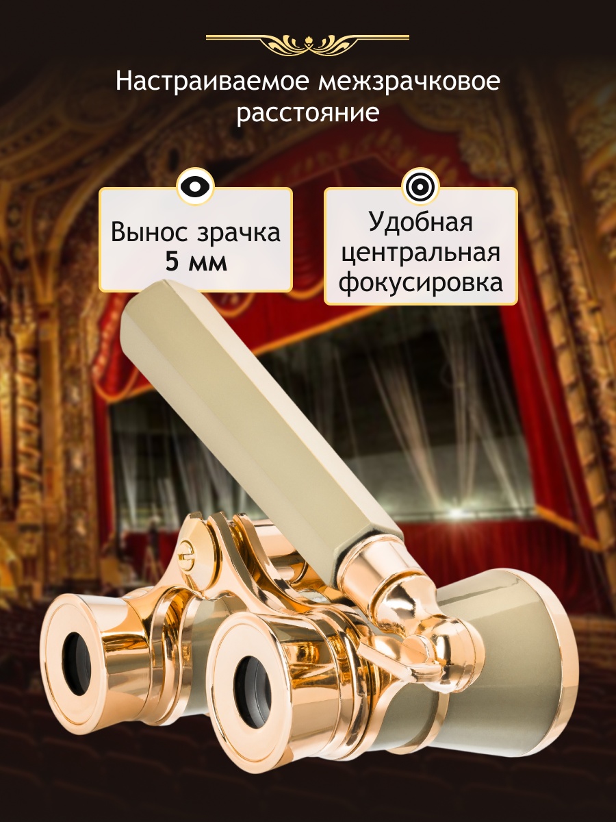 Изящный бинокль-лорнет Levenhuk Broadway 325E прекрасно подойдет тем, кто часто ходит в театр. Он обладает стильным внешним видом и имеет оптимальные технические характеристики для наблюдений внутри помещения. Модель обеспечивает 3-кратное приближение, качественная оптика формирует светлую и детализированную картинку в условиях слабой освещенности. Бинокль порадует обладателя сравнительно широким полем зрения и малой дистанцией ближней фокусировки (3,5 метра). Элегантный черный корпус с броскими золотыми элементами подойдет к любому наряду.