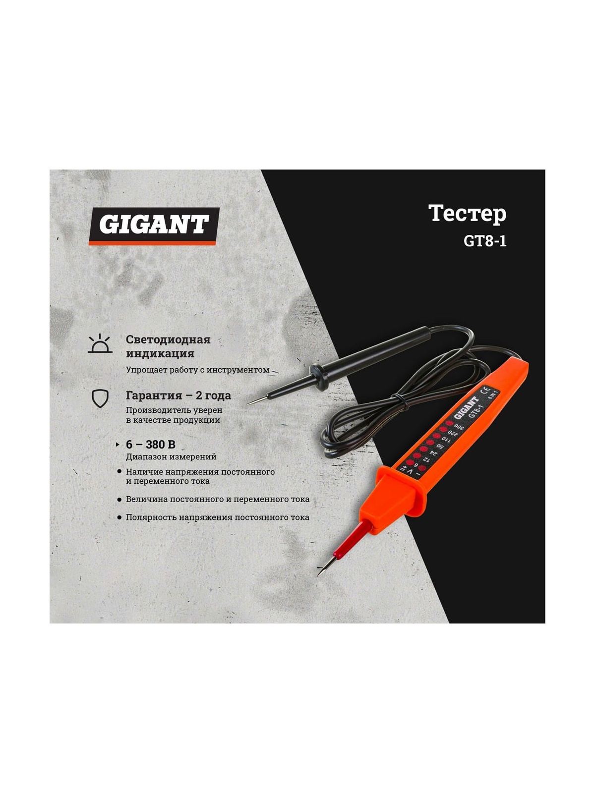 Тестер Gigant GT8-1 представляет собой безопасный и простой в использовании прибор, который служит для индикации наличия и величины напряжения в электроцепи. Светодиодный дисплей позволяет легко считывать данные из любого положения. Прочный корпус эргономичной формы способствует удобству эксплуатации.