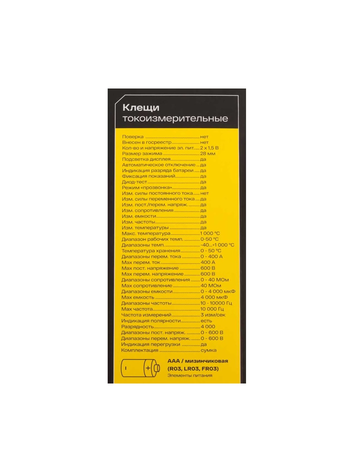 Количество и напряжение элементов питания - 2х1.5B