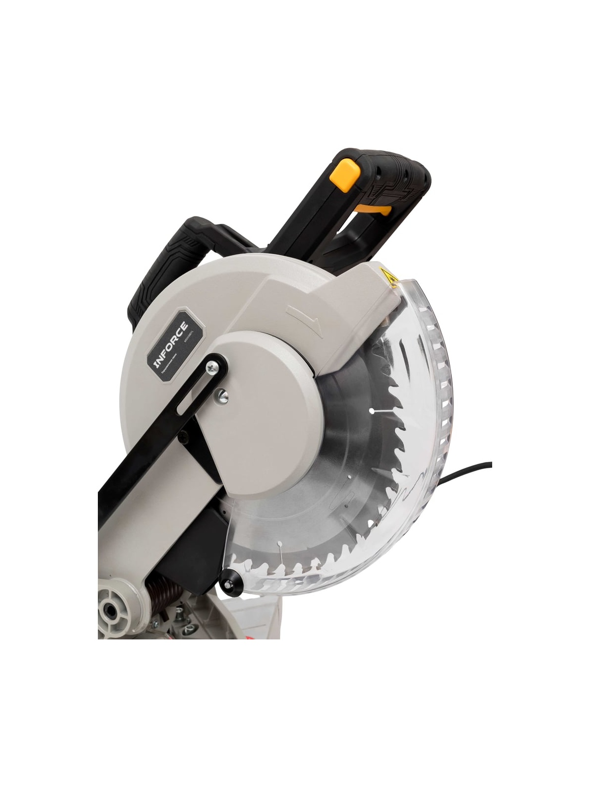 Inforce MS1018EFL - это торцовочная пила с высокой точностью углов реза. Подсветка, лазер и регулируемый стол обеспечивают высокую точность. Есть функция электронного тормоза. Подходит для плинтусов, наличников и других столярных работ. Компактная и надежная. Односторонний наклон. Преимущество электронного тормоза: мгновенная остановка диска после выключения. Вместо 10-20 секунд свободного вращения диск останавливается за 2-5 секунд. Это резко снижает риск получения травмы при случайном прикосновении к диску после отключения питания, при смене диска или уборке стружки.