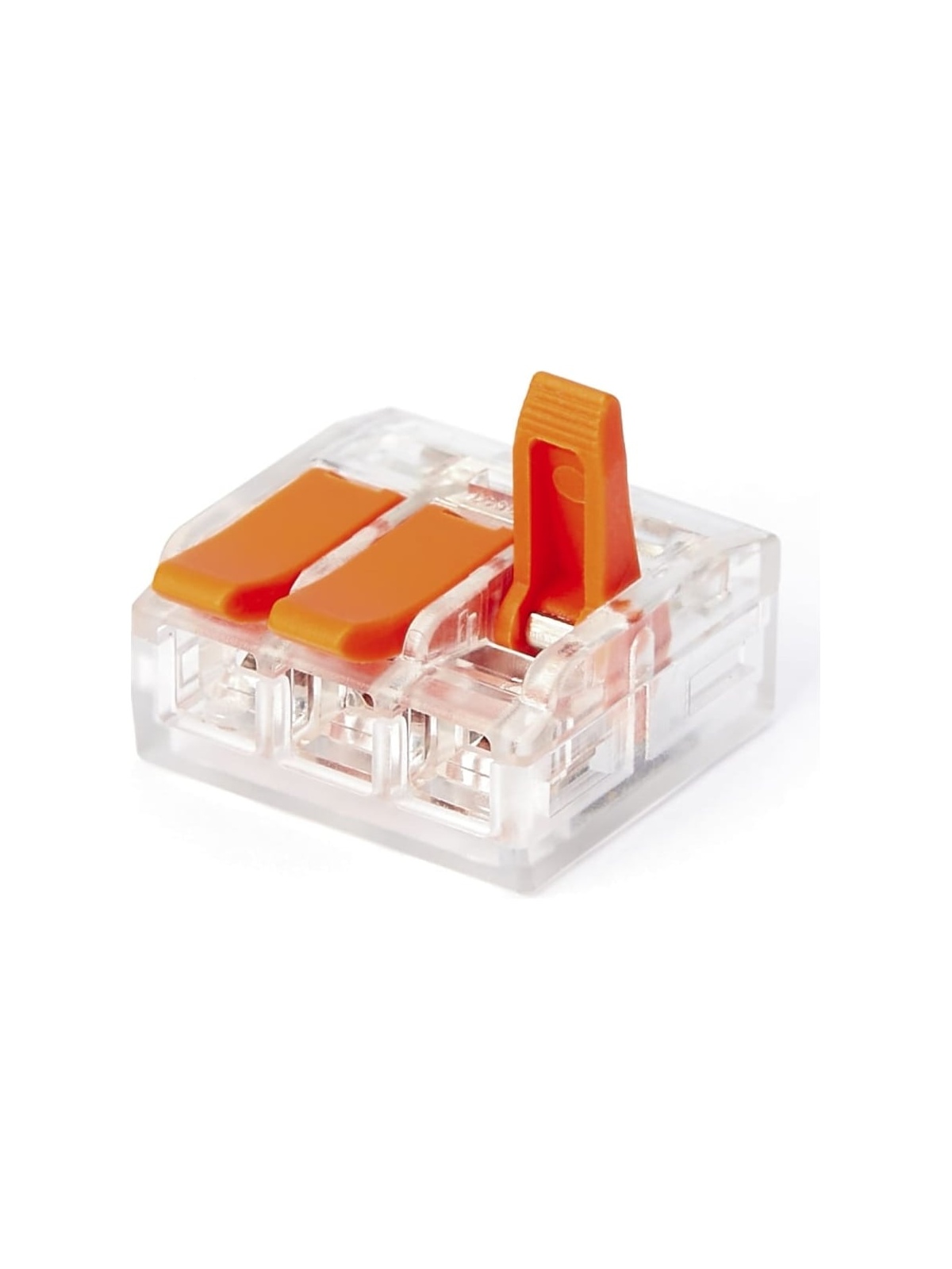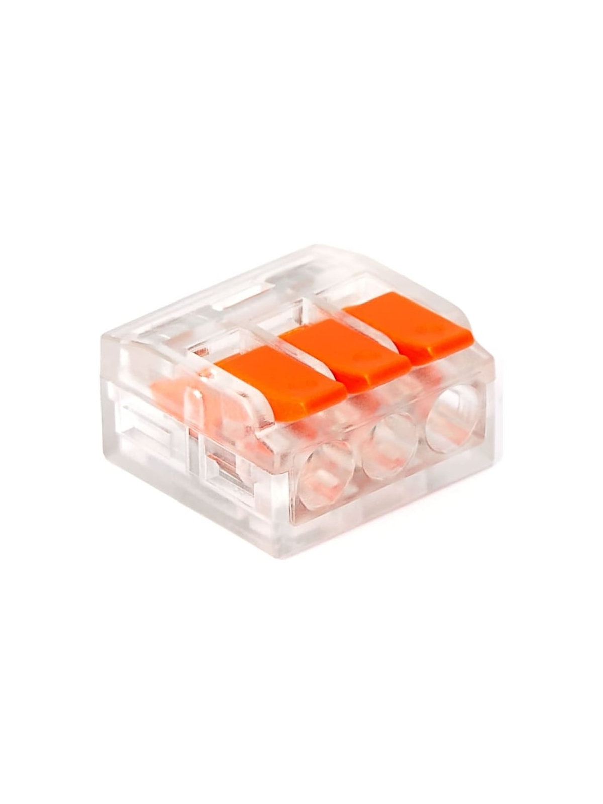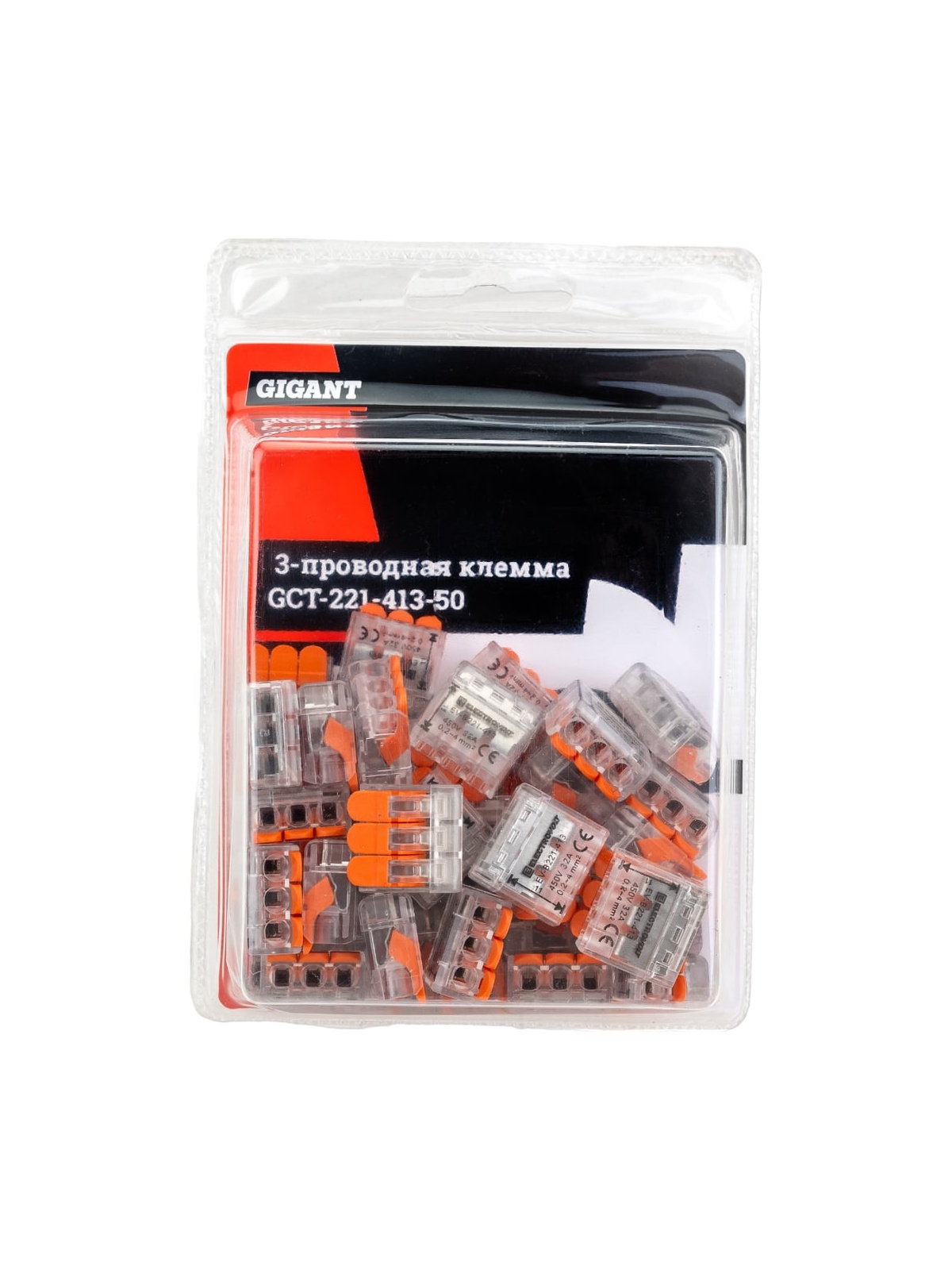 Трехпроводная клемма Gigant 50 шт/уп 0,08-2,5(4)мм² GCT-221-413-50 предназначена для быстрого и надёжного соединения медных проводников в распределительных коробках, щитах и электроустановочных изделиях. Используется в сетях переменного и постоянного тока напряжением до 600 В с номинальным током до 32 А. Подходит для профессионального и бытового электромонтажа. Клеммы серии 221 обеспечивают соединение однопроволочных и многопроволочных проводников различного сечения в одной клемме: — многопроволочные: 0,14–4 мм²; — однопроволочные: 0,2–4 мм². Рабочая температура окружающей среды — до +85 °C. Рекомендуемая длина зачистки изоляции — 11 мм. Применяются при монтаже осветительных линий, розеточных групп, распределительных коробок, подключении оборудования, а также при ремонте и модернизации электропроводки. Преимущества: Прозрачный корпус позволяет визуально контролировать правильность вставки и глубину захода проводника. Возможность сочетания проводников разного типа и сечения в одной клемме — удобно при реконструкции и подключении нового оборудования к существующей проводке. Пружинный зажим из нержавеющей стали обеспечивает стабильное контактное давление и исключает ослабление соединения со временем. Медный контакт с гальваническим покрытием гарантирует низкое переходное сопротивление и устойчивость к нагреву. Корпус выполнен из полимерного материала, соответствующего классу пожарной безопасности UL 94 V0 — не поддерживает горение и самозатухает при устранении источника пламени. Детали изготовлены из армированного стекловолокном полимера — повышенная прочность и устойчивость к механическим нагрузкам. Быстрый монтаж без инструмента: провод вводится в зажим без чрезмерных усилий и надёжно фиксируется без риска выпадения. Российское производство полного цикла с автоматизированной сборкой и контролем качества — стабильность параметров каждой партии.