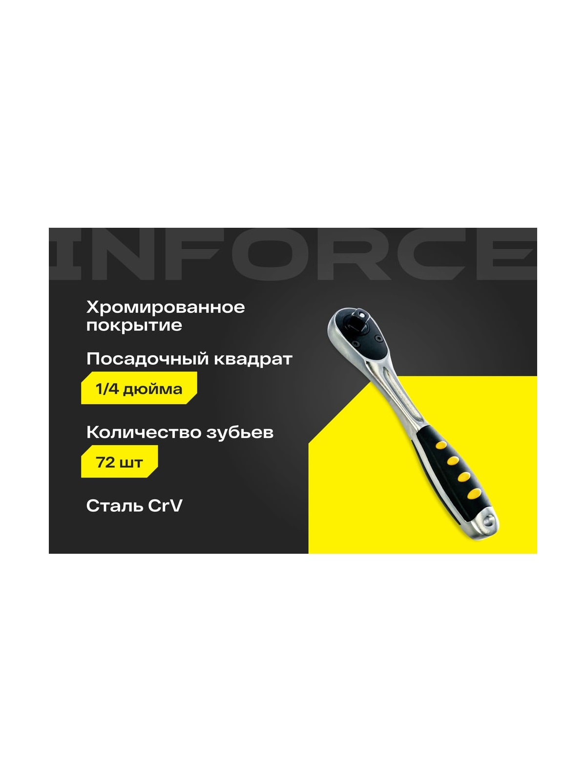 Трещотка 1/4 Inforce DR 06-05-48 - простой и удобный ручной инструмент для работы с резьбовыми соединениями. Рабочая часть имеет обработку поверхности методом сатинирования. Инструмент отличается простотой в применении: рабочая головка снимается всего одним нажатием на кнопку. В ассортименте есть другой размер. Перед использованием рекомендуется произвести 25 циклов вращения трещоточного механизма - для распределения смазки по всей поверхности механизма.