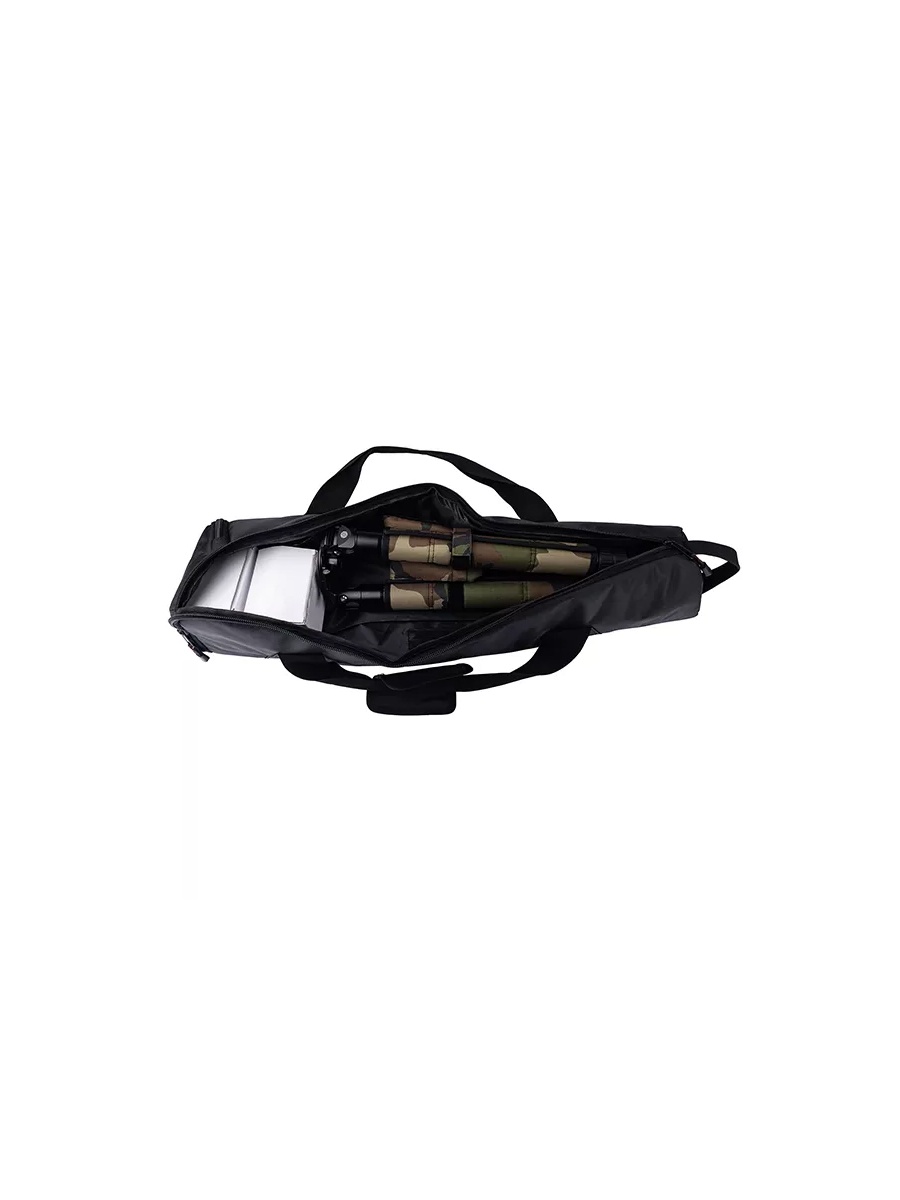 Комплектная сумка практичного черного цвета, выполненная из плотного и влагостойкого полиэстера 500D, упрощает хранение и транспортировку штатива.