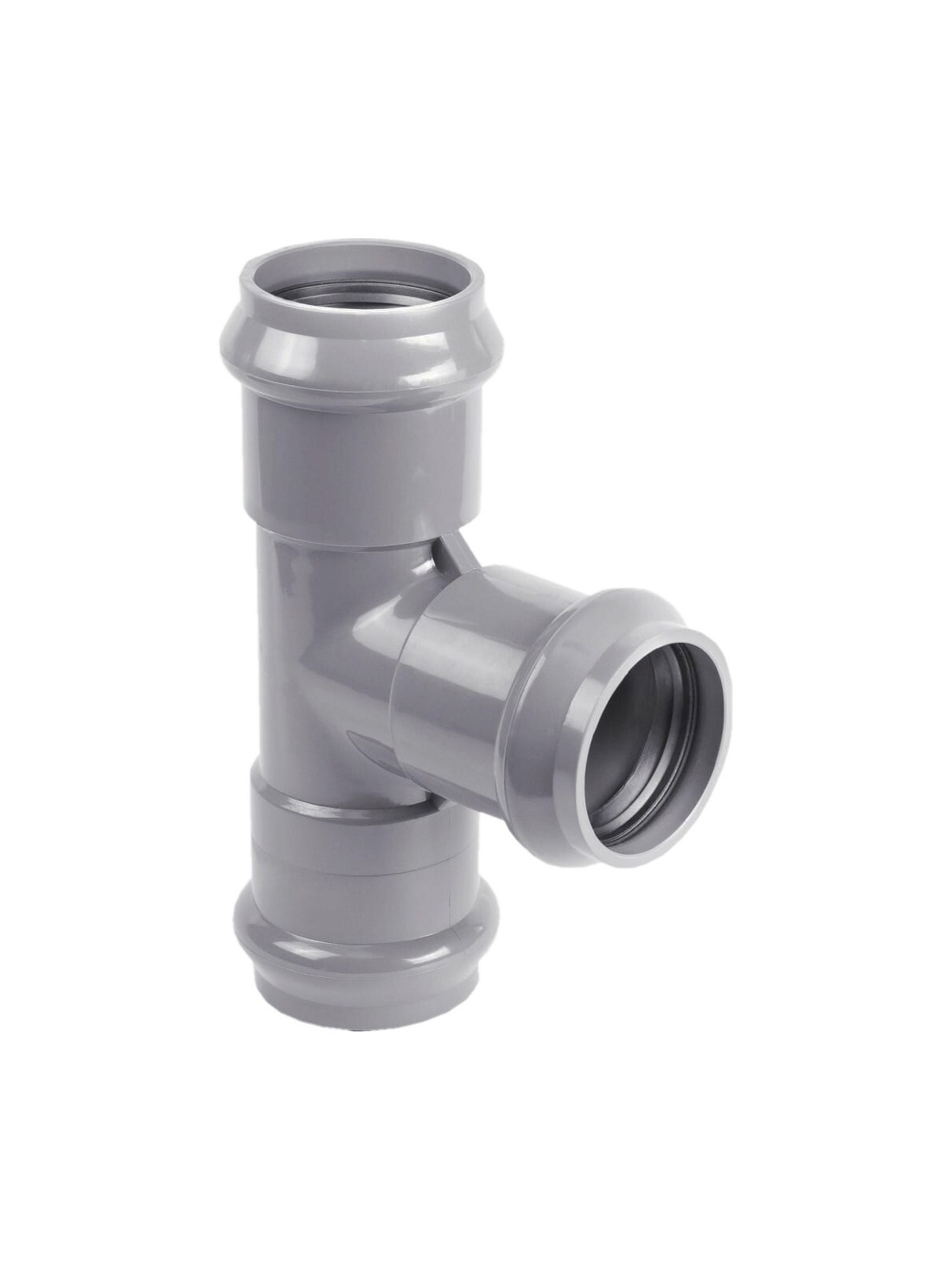 Тройник раструбный используется для устройства разветвлений под углом 90 градусов сетей трубопровода из труб НПВХ.