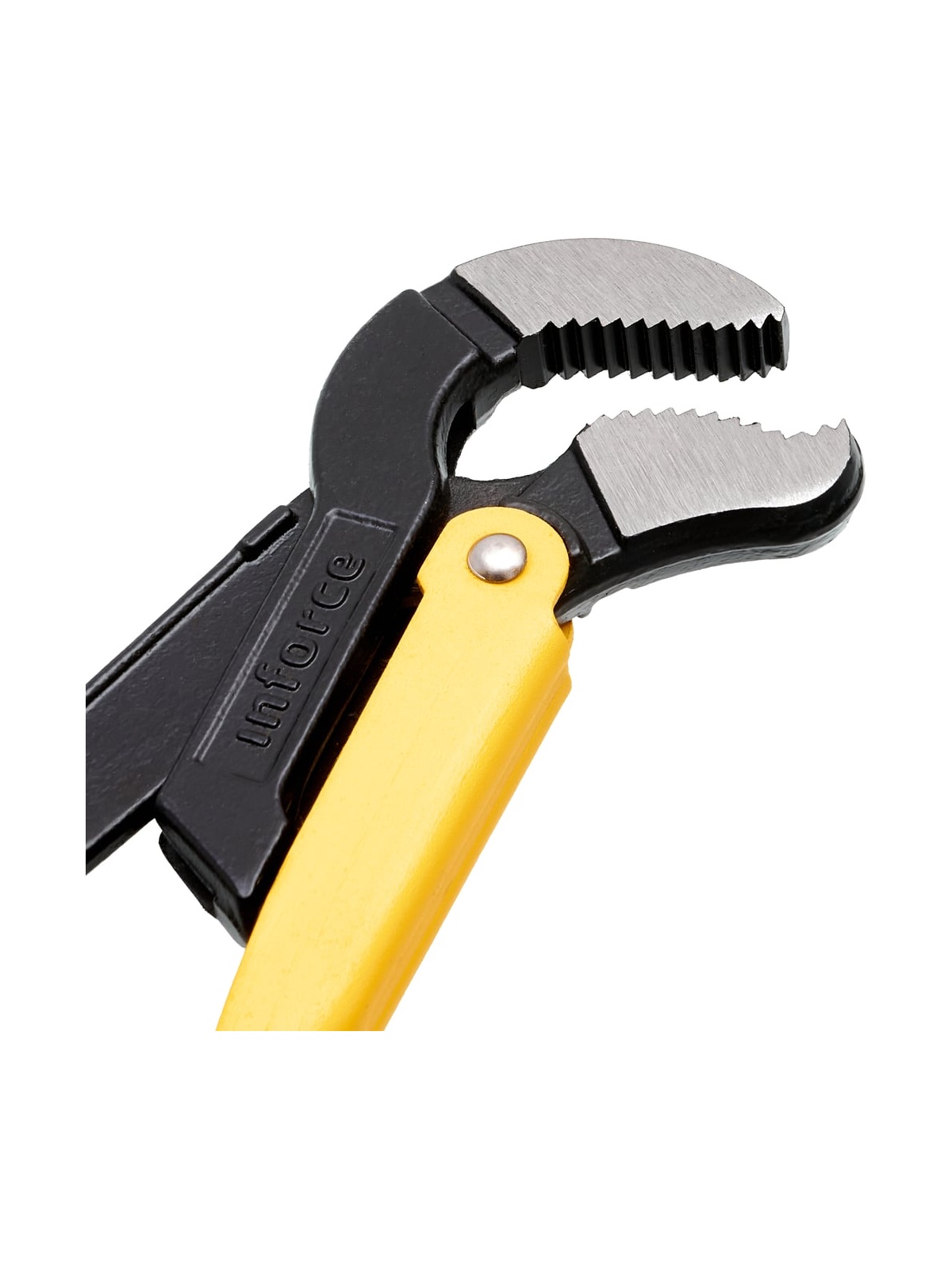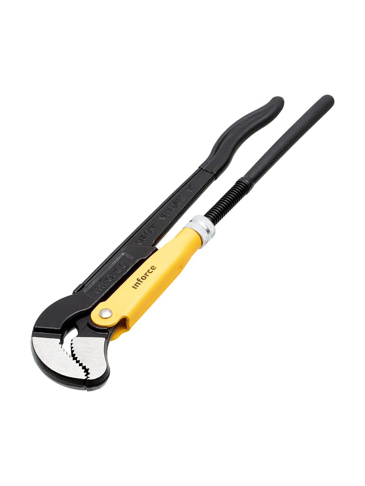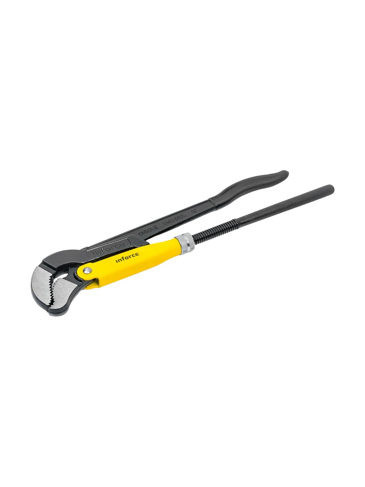 Трубный рычажный ключ Inforce №2 тип S 06-05-115 - цельнокованый инструмент, выполненный из хромованадиевой стали и обработанный порошковым покрытием для увеличения долговечности. Регулируемая гайка для настройки зажима оснащена стопорным кольцом. Зажимные губки имеют зубья, у которых наклон направлен против вращения, что способствует более надежному хвату.