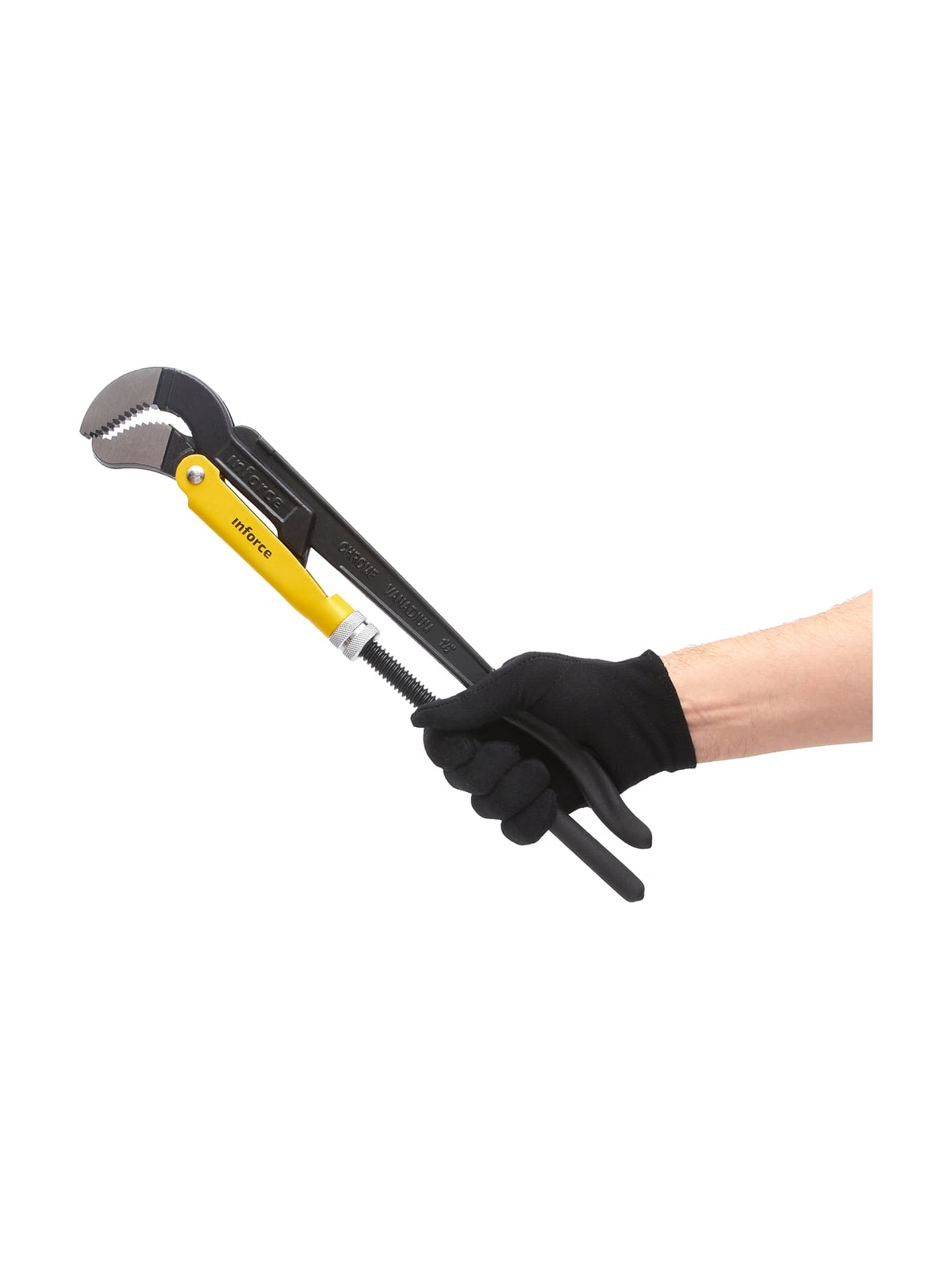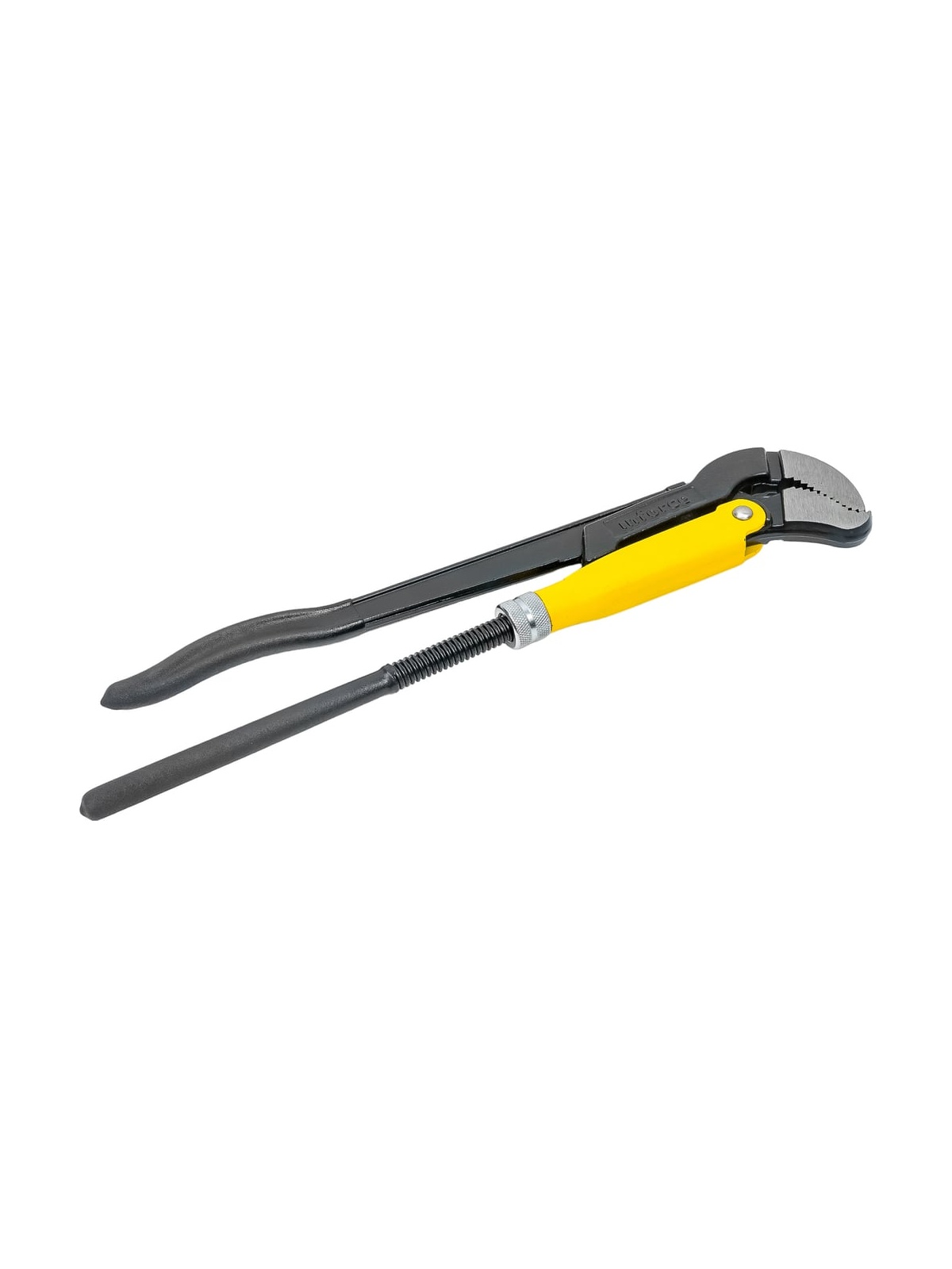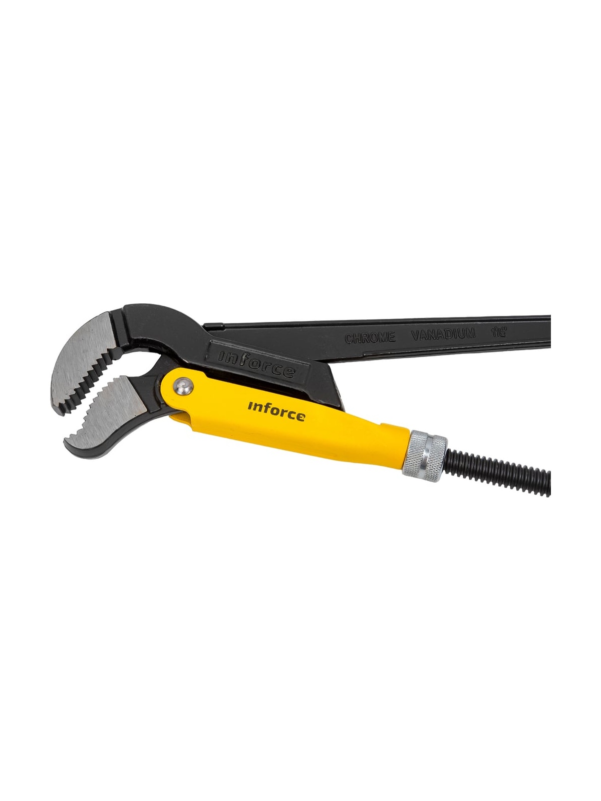 Трубный рычажный ключ Inforce №2 тип S 06-05-115 - цельнокованый инструмент, выполненный из хромованадиевой стали и обработанный порошковым покрытием для увеличения долговечности. Регулируемая гайка для настройки зажима оснащена стопорным кольцом. Зажимные губки имеют зубья, у которых наклон направлен против вращения, что способствует более надежному хвату.