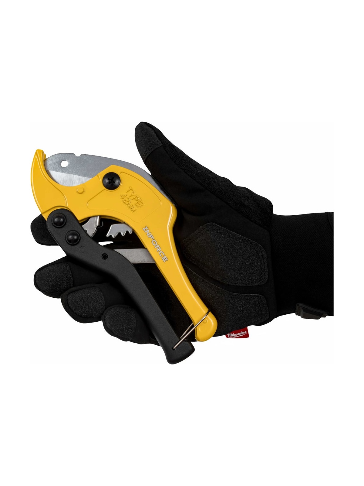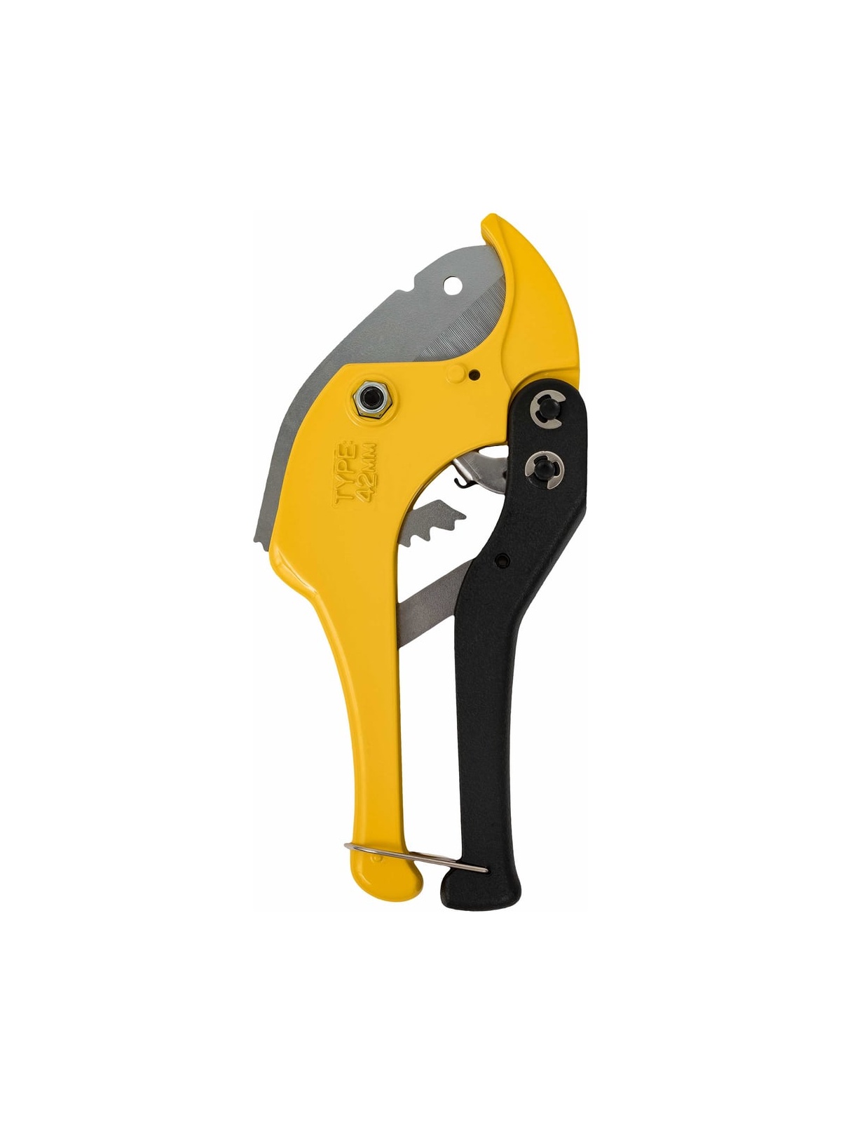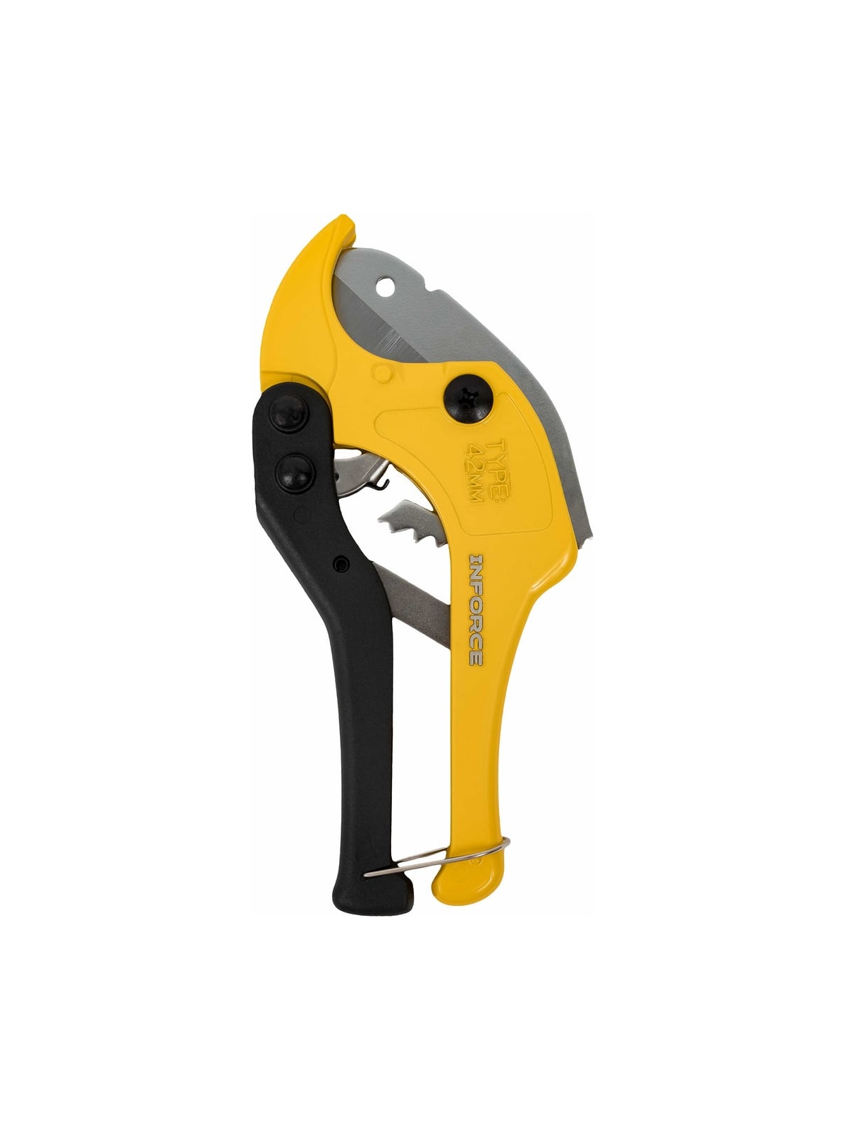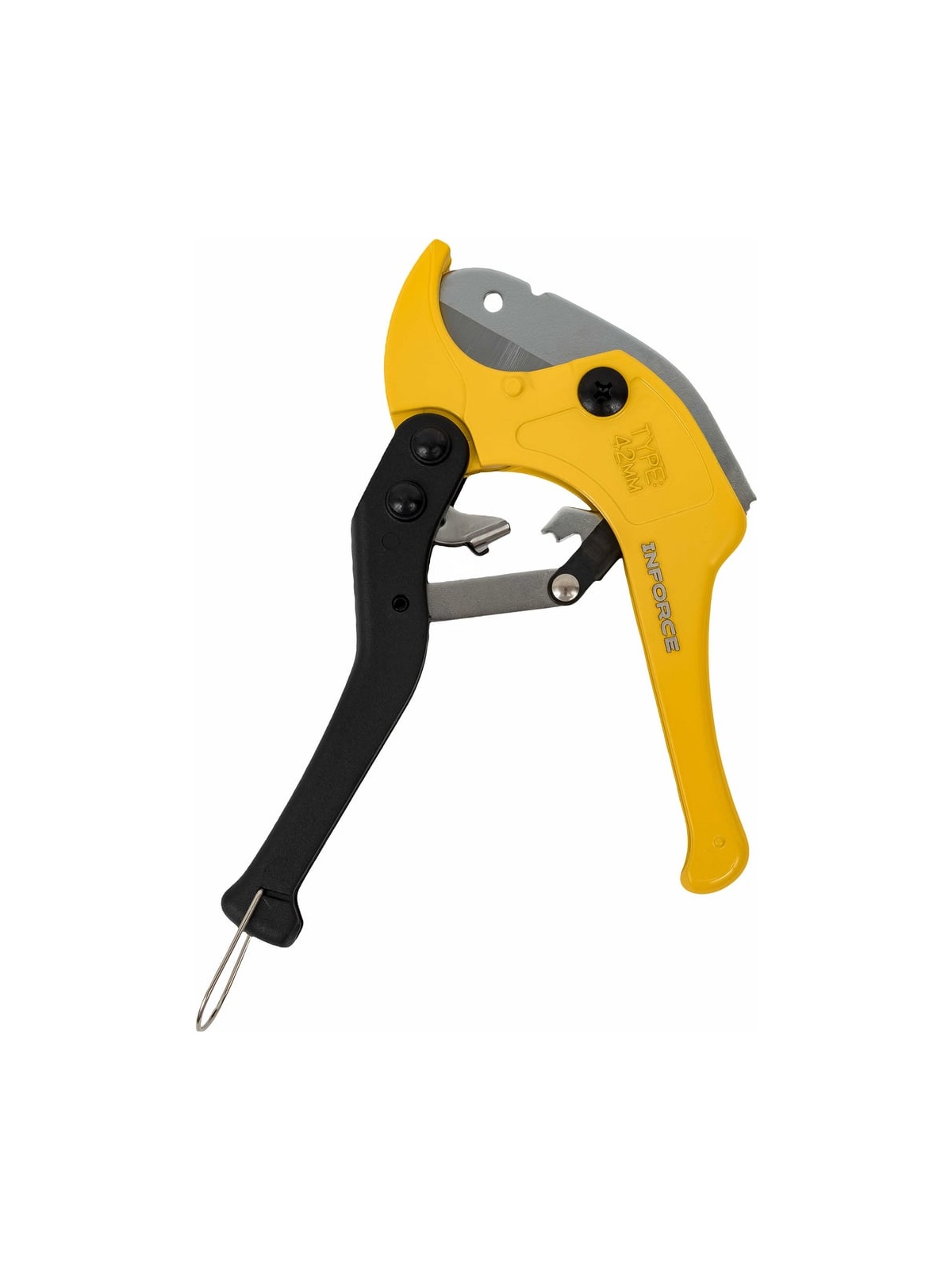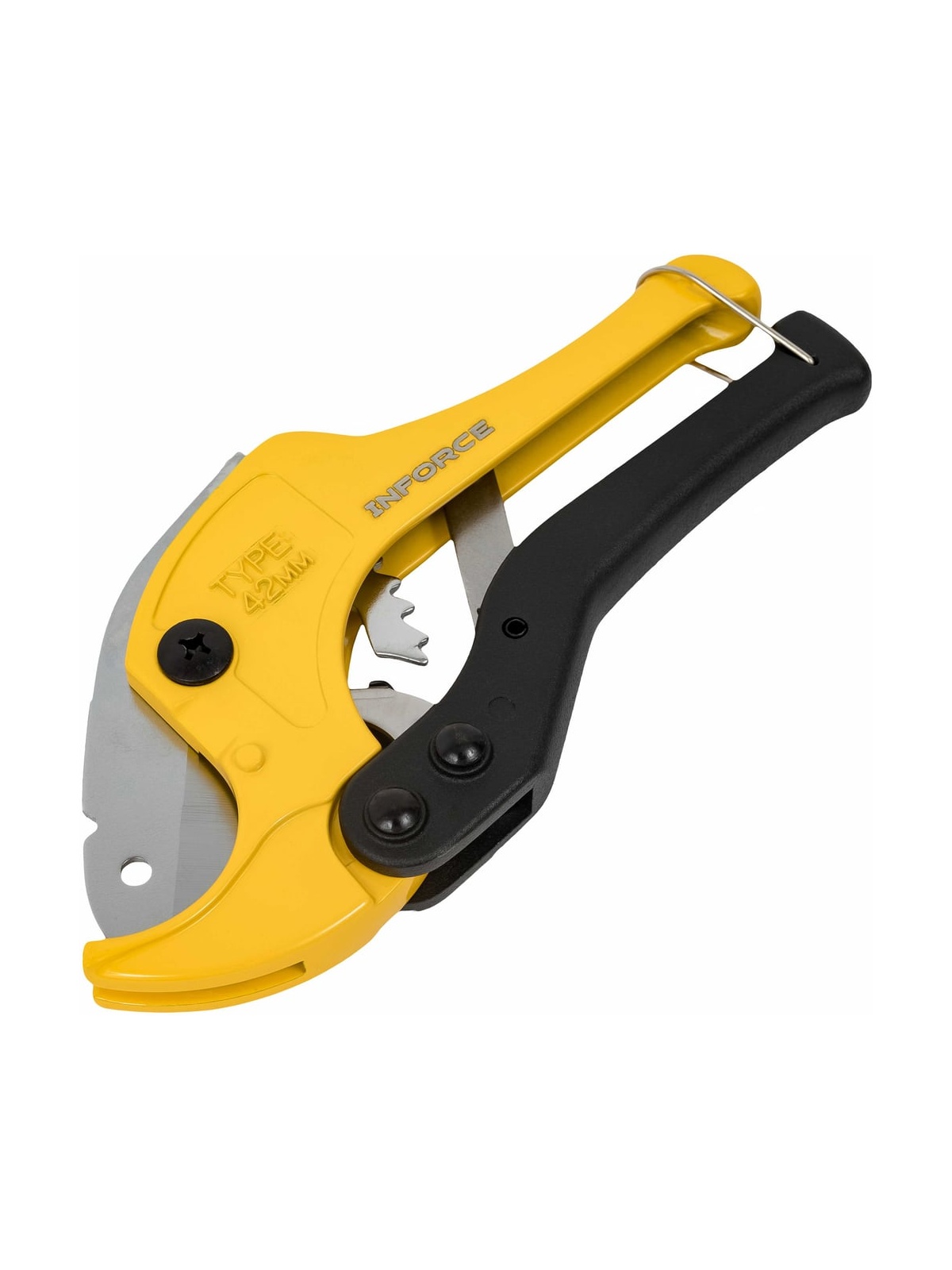 Труборез для металлопластиковых труб Inforce 42мм 06-15-10 представляет собой профессиональный инструмент, предназначенный для резки труб диаметром от 3 до 42 мм. Он оснащен храповым механизмом, который обеспечивает плавное и точное разрезание, минимизируя усилия пользователя. Резцы изготовлены из быстрорежущей стали, что гарантирует долговечность и высокую производительность при работе с металлопластиковыми трубами. Корпус выполнен из дюралюминиевого сплава, что делает инструмент легким и удобным в использовании, его вес составляет всего 0.360 кг.