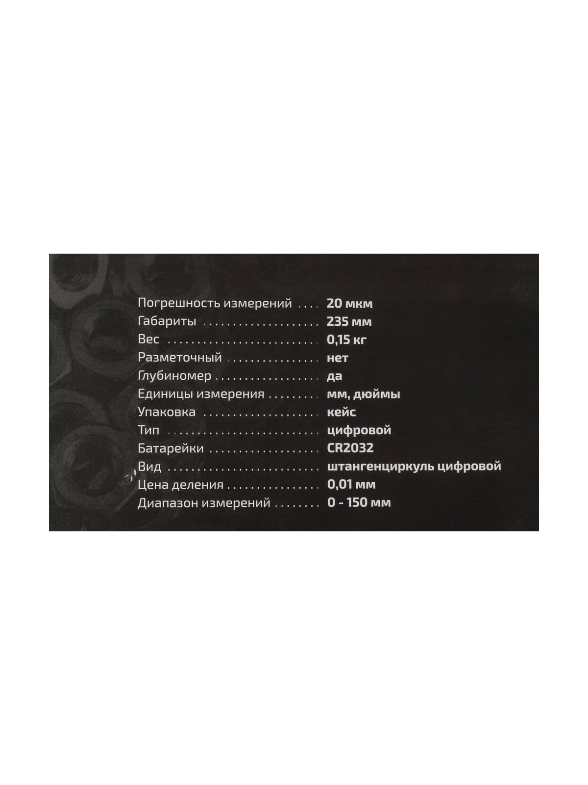 Цифровой штангенциркуль 0-150мм Inforce 06-11-39 представляет собой надёжный измерительный инструмент. Погрешность измерений данной модели составляет 0.02 мм. Цена деления - 0.01 мм. Шкала нанесена методом лазерной гравировки. Инструмент соответствует всем стандартам. Отличается прочностью и долговечностью.