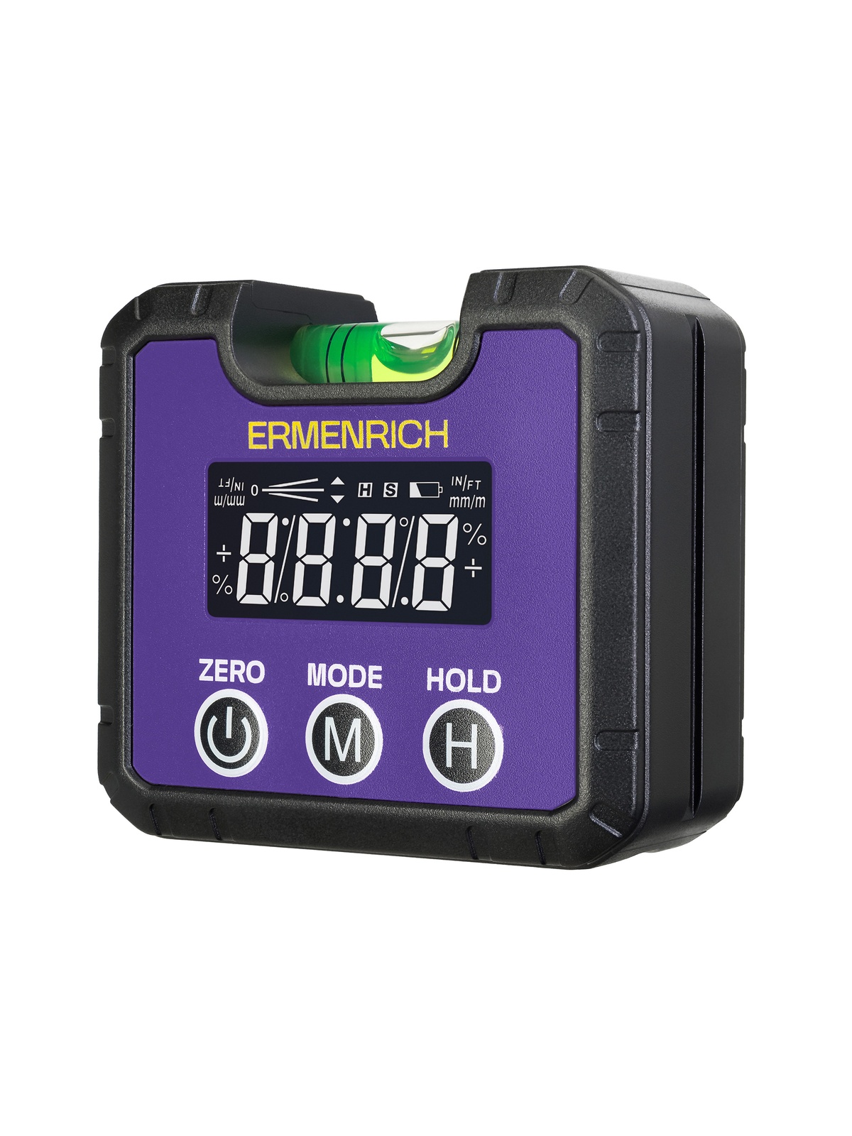 Цифровой уровень Ermenrich Verk LQ30 – это точный и надежный инструмент, который пригодится для строительных или отделочных работ, как профессиональных, так и бытовых, а также станет незаменимым помощником на производстве. Результаты измерений и направление наклона выводятся на жидкокристаллический экран, а в верхней части прибора установлен дополнительный пузырьковый уровень.