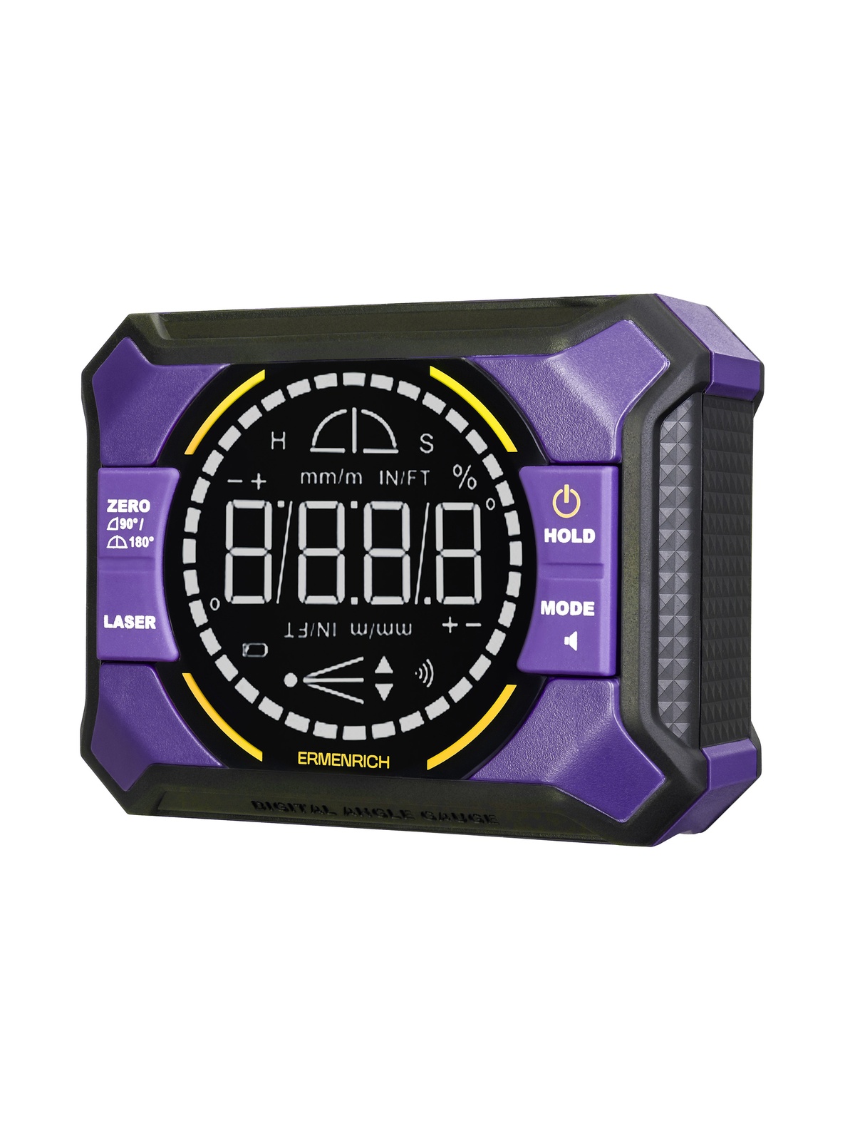 Цифровой уровень Ermenrich Verk LQ50 объединяет электронную точность с наглядной лазерной проекцией, поэтому он одинаково полезен на профессиональной стройке и в домашней мастерской. Встроенный датчик фиксирует угол с точностью до сотых градуса.