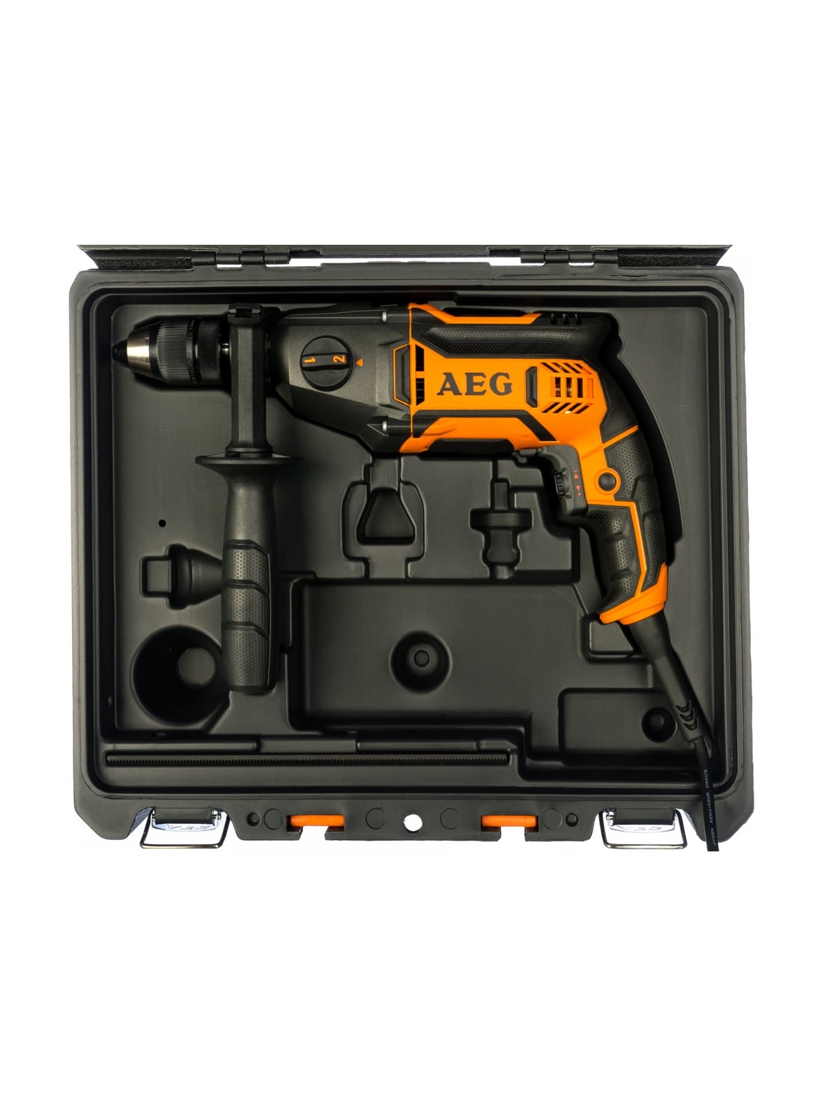 Ударная дрель AEG SB2E850R 4935447360 позволяет проделывать отверстия в древесине, стали, кирпичной кладке и бетоне. Мощный щеточный двигатель гарантирует работу модели без сбоев, а вентиляционные отверстия исключают перегрев дрели. Универсальность. Модель имеет режимы работы: нормальное сверление и сверление с ударом. Возможность обратного вращения. Функция реверса упрощает выведение застрявшего в материале сверла. Удобство хранения. Кейс решает вопрос хранения и транспортировки ударной дрели.