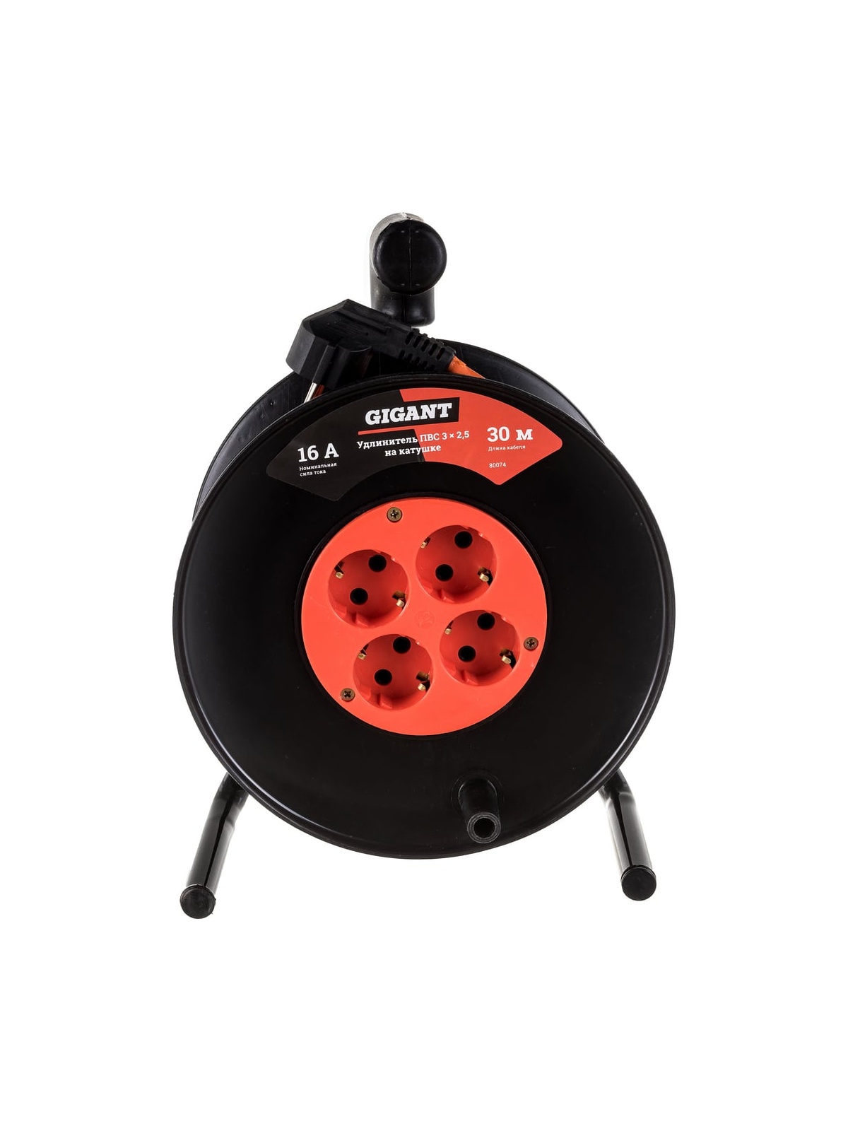 Удлинитель Gigant ПВС 3x2,5 30м на катушке 80074 предназначен для удаленного подключения электроинструмента. Катушка облегчает хранение, транспортировку и эксплуатацию кабеля. Удлинитель можно применять на стройках, на производстве, а также на открытом воздухе. Длина кабеля - 30 метров. Удлинитель оформлен 4 розетками 16 А. Сечение провода - 3х2,5 мм. На корпусе катушки предусмотрена удобная ручка для переноски конструкции по рабочей площадке. Устойчивые опоры обеспечивает надежное положение катушки при разматывании кабеля.