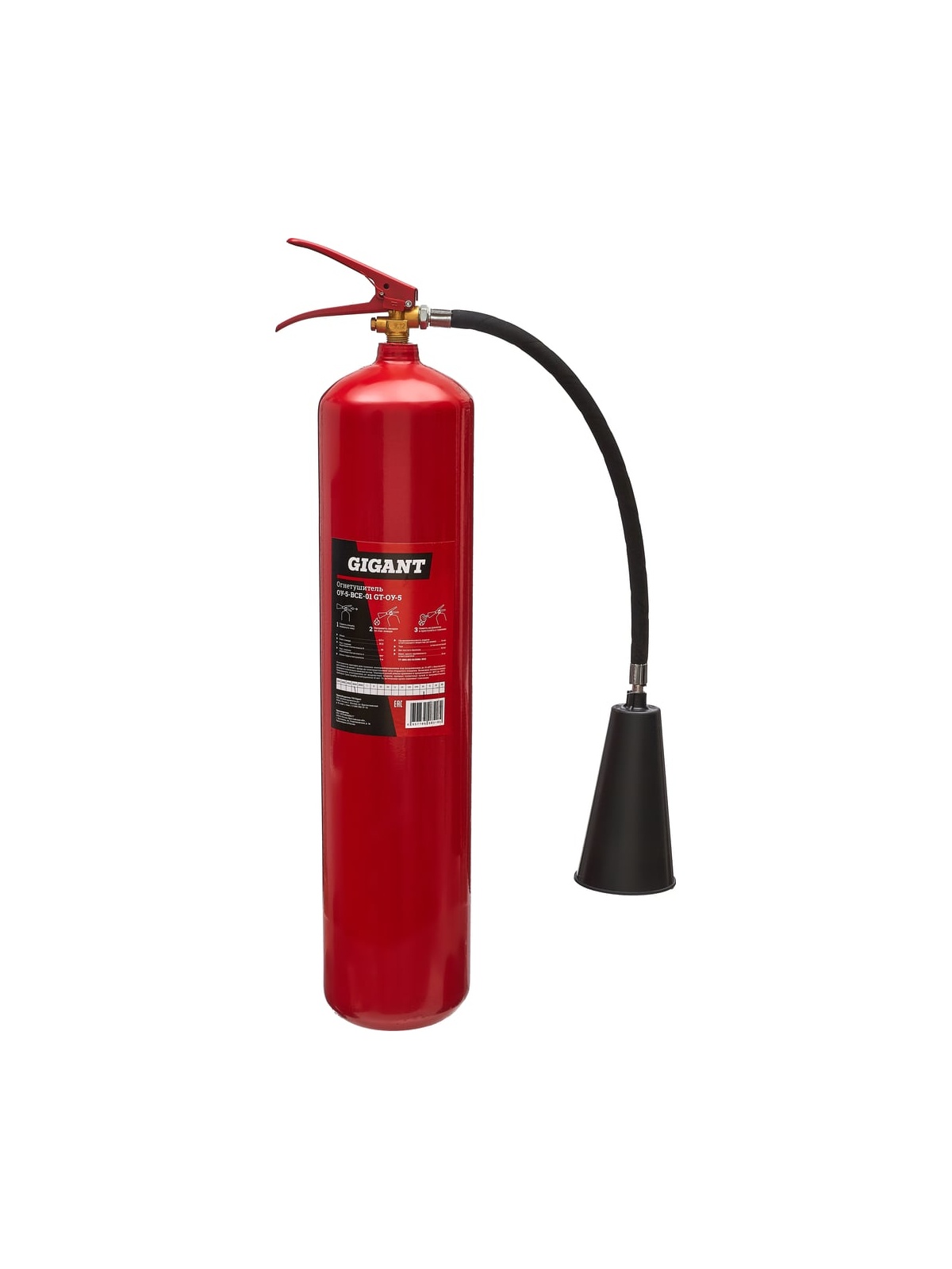 Углекислотный огнетушитель Gigant ОУ-5-ВСЕ-01 GT-ОУ-5 – закачной огнетушитель высокого давления с зарядом жидкой двуокиси углерода, находящейся под давлением жидких паров. Применяется для первичного тушения пожаров и возгораний класса B, C, E (горючие и легковоспламеняющиеся жидкости, горючие газы, электроустановки, не превышающие напряжение 10000 Вольт). Основным преимуществом углекислотного огнетушителя является то, что двуокись углерода не повреждает объект тушения и не оставляет следов.