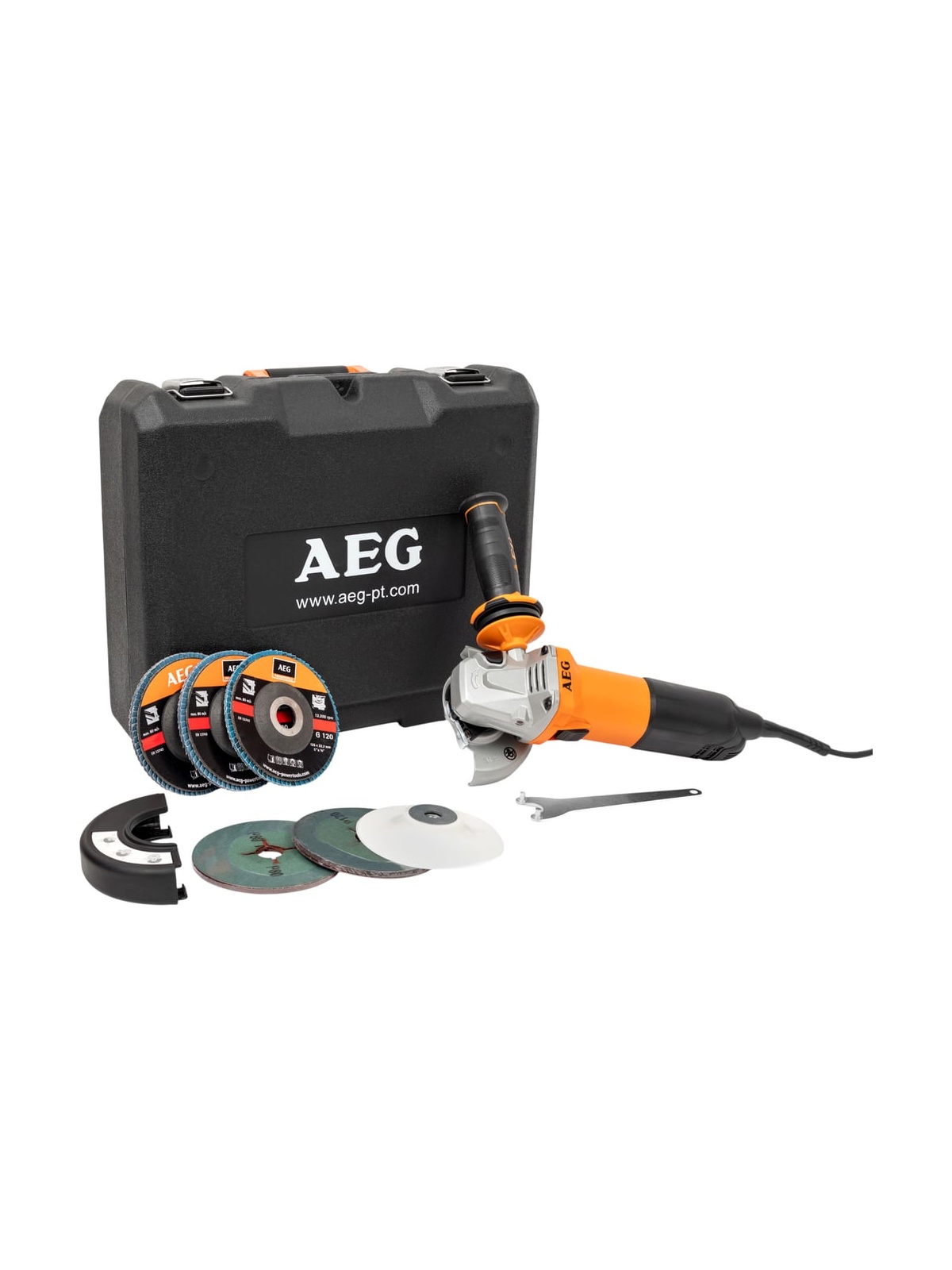 Угловая шлифмашина AEG WS13-125SXEK 4935451310 оснащена новым мощным двигателем, который обеспечивает отличную производительность. Фрезерованные металлические шестерни повышают надежность конструкции. Благодаря плоскому металлическому корпусу редуктора, удобно работать в ограниченном пространстве. Специальный поворотный кожух защищает оператора при работе, он может устанавливаться в нескольких угловых положениях вручную, без отвертки. Модель имеет электронную регулировку оборотов, что позволяет выполнять различные виды работ.