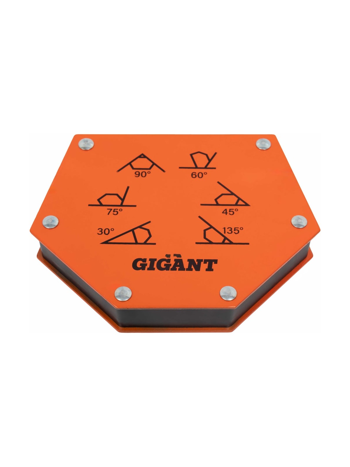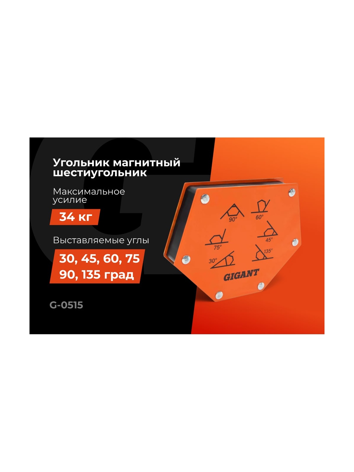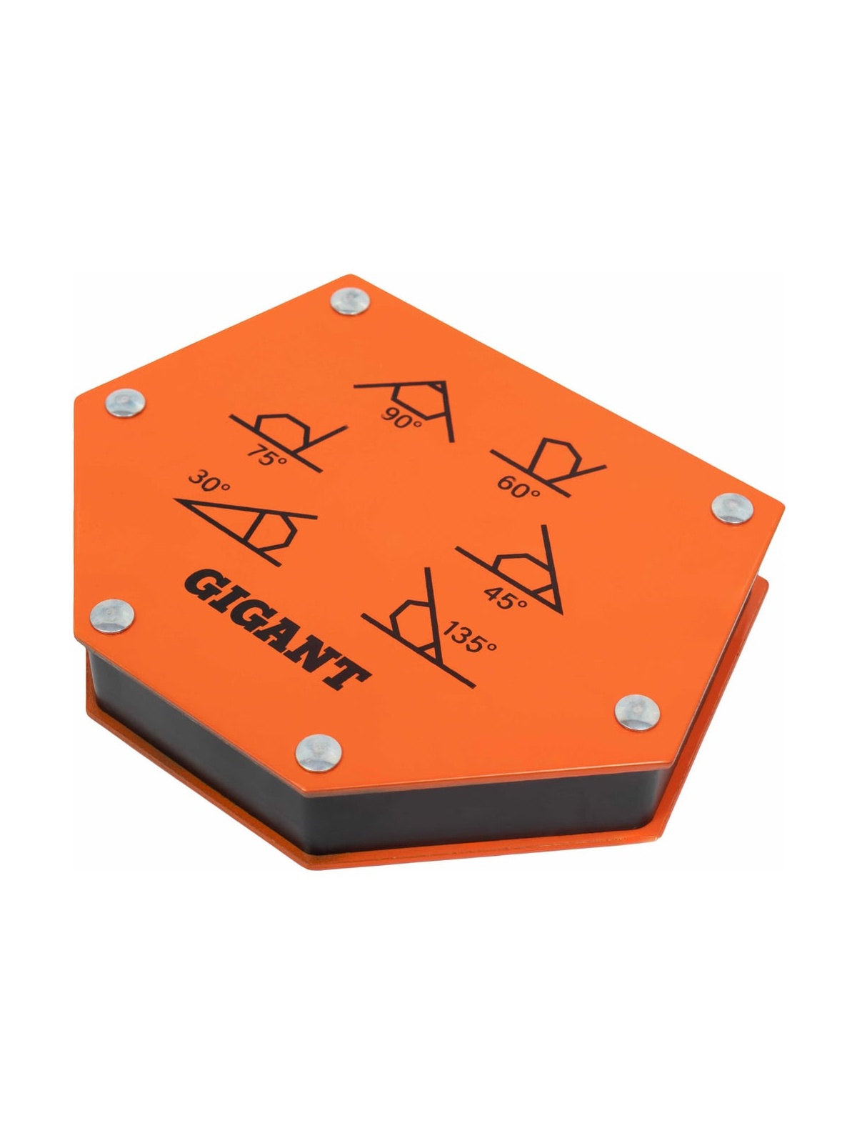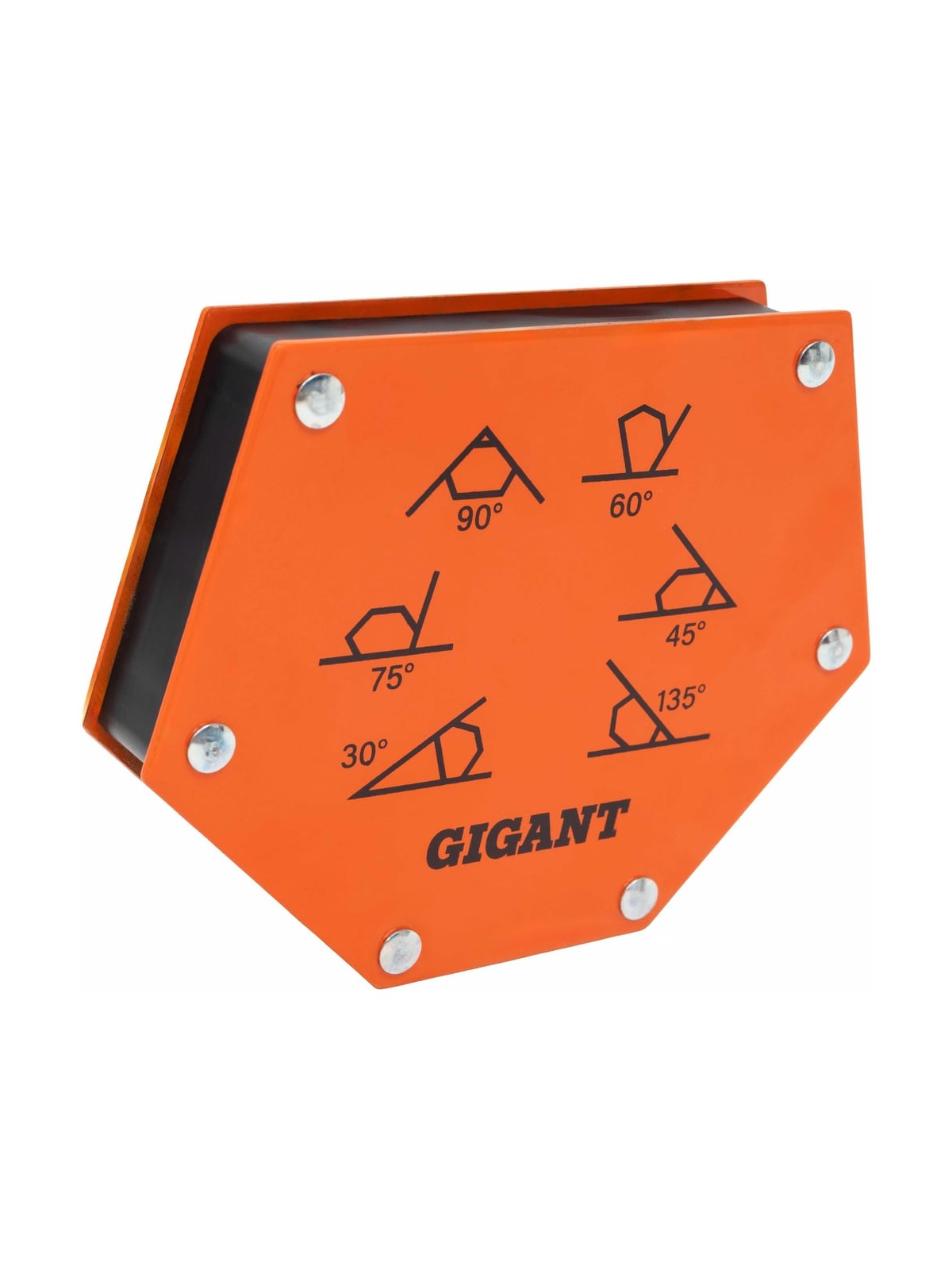 Угольник магнитный шестиугольник 75LBS Gigant G-0515 служит для фиксации металлических деталей и точного выставления углов при сварке, пайке и сборке конструкций. Позволяет задавать значения 30, 45, 60, 75, 90 и 135 градусов. Изготовлен из твердосплавной стали, максимальное усилие до 34 кг. Увеличение скорости работы обеспечено простотой монтажа уголка, что дает возможность работать одному оператору. Размер угольника (ДхШхВ): 138х110х25 мм.
