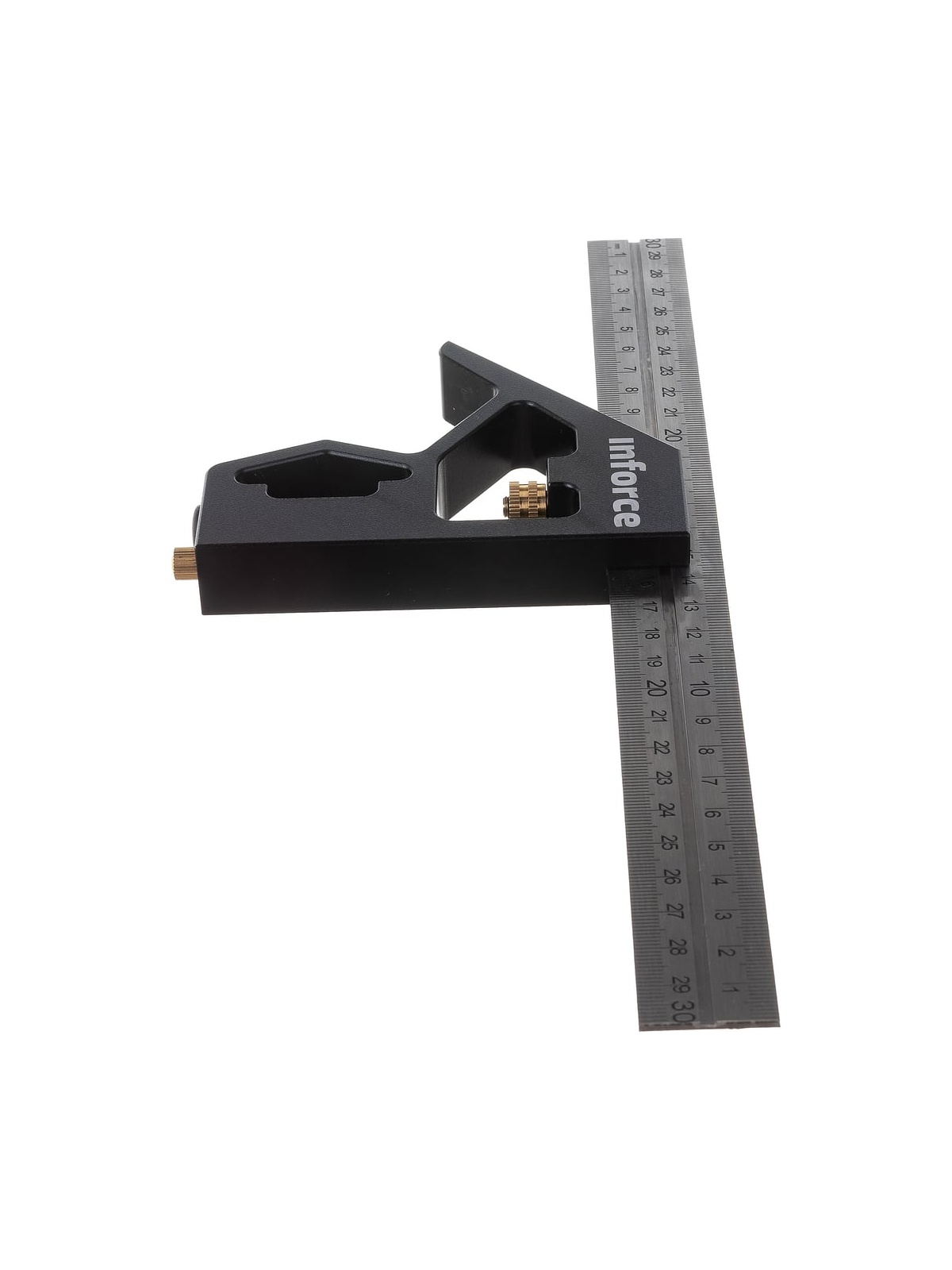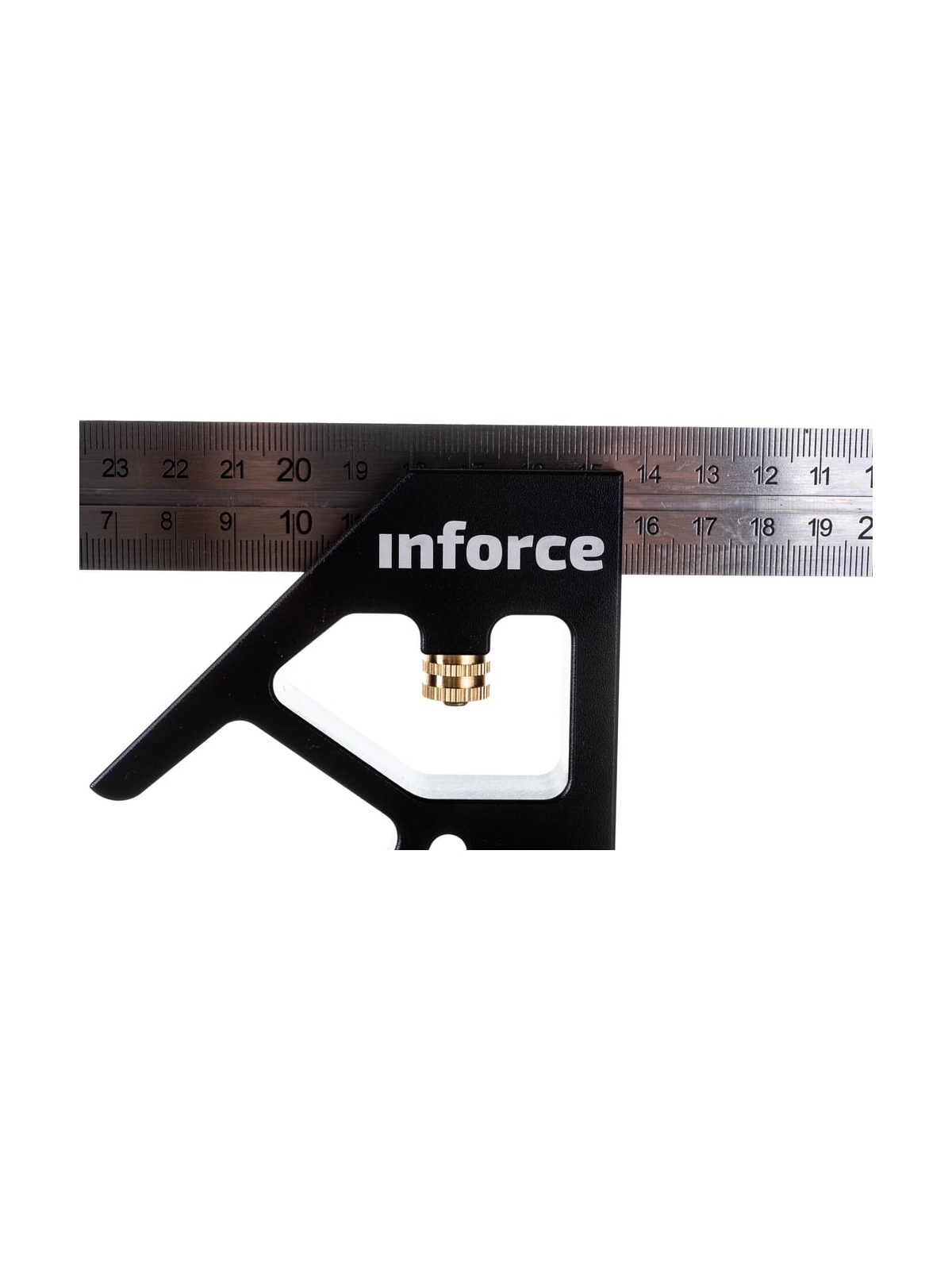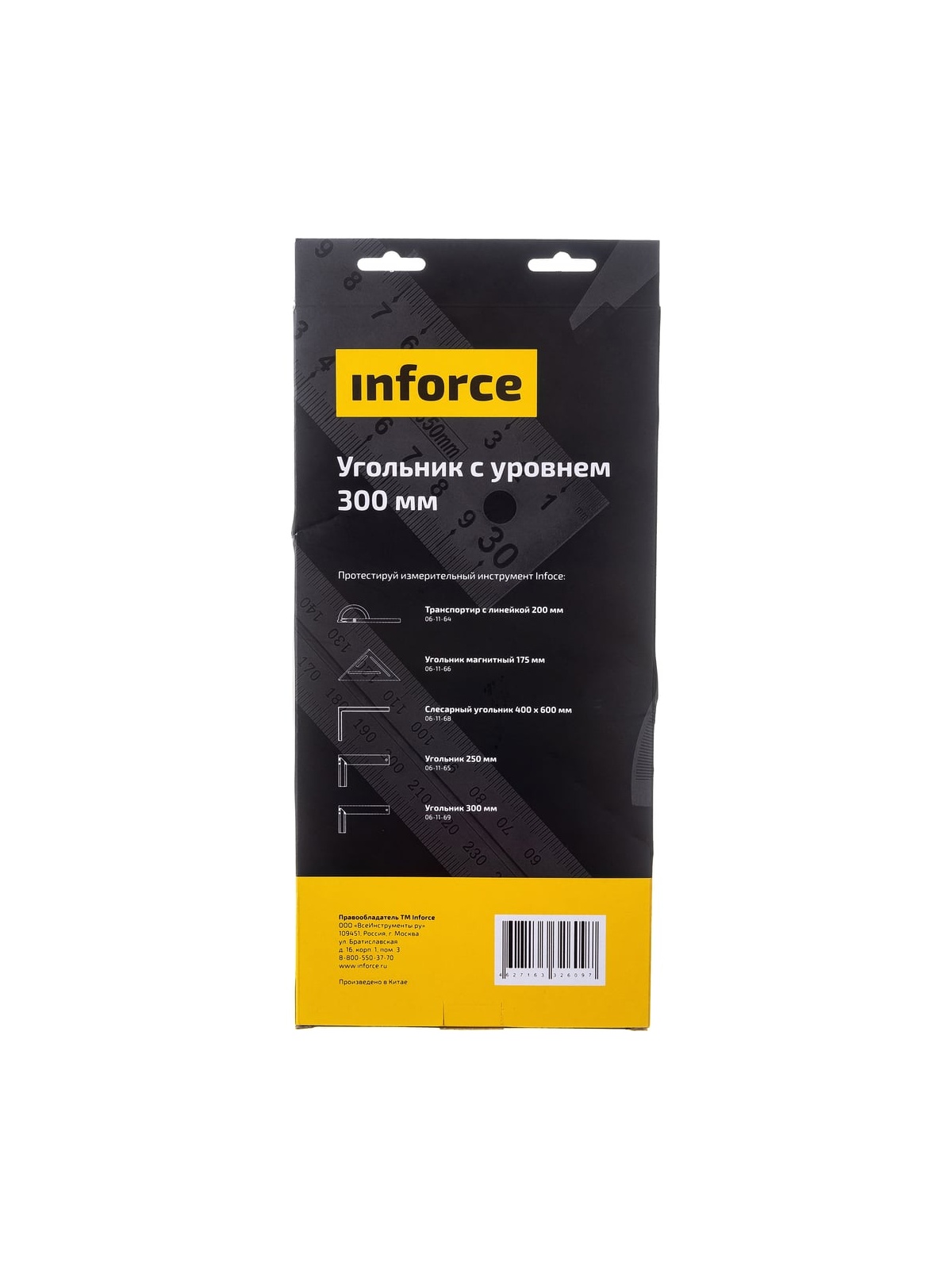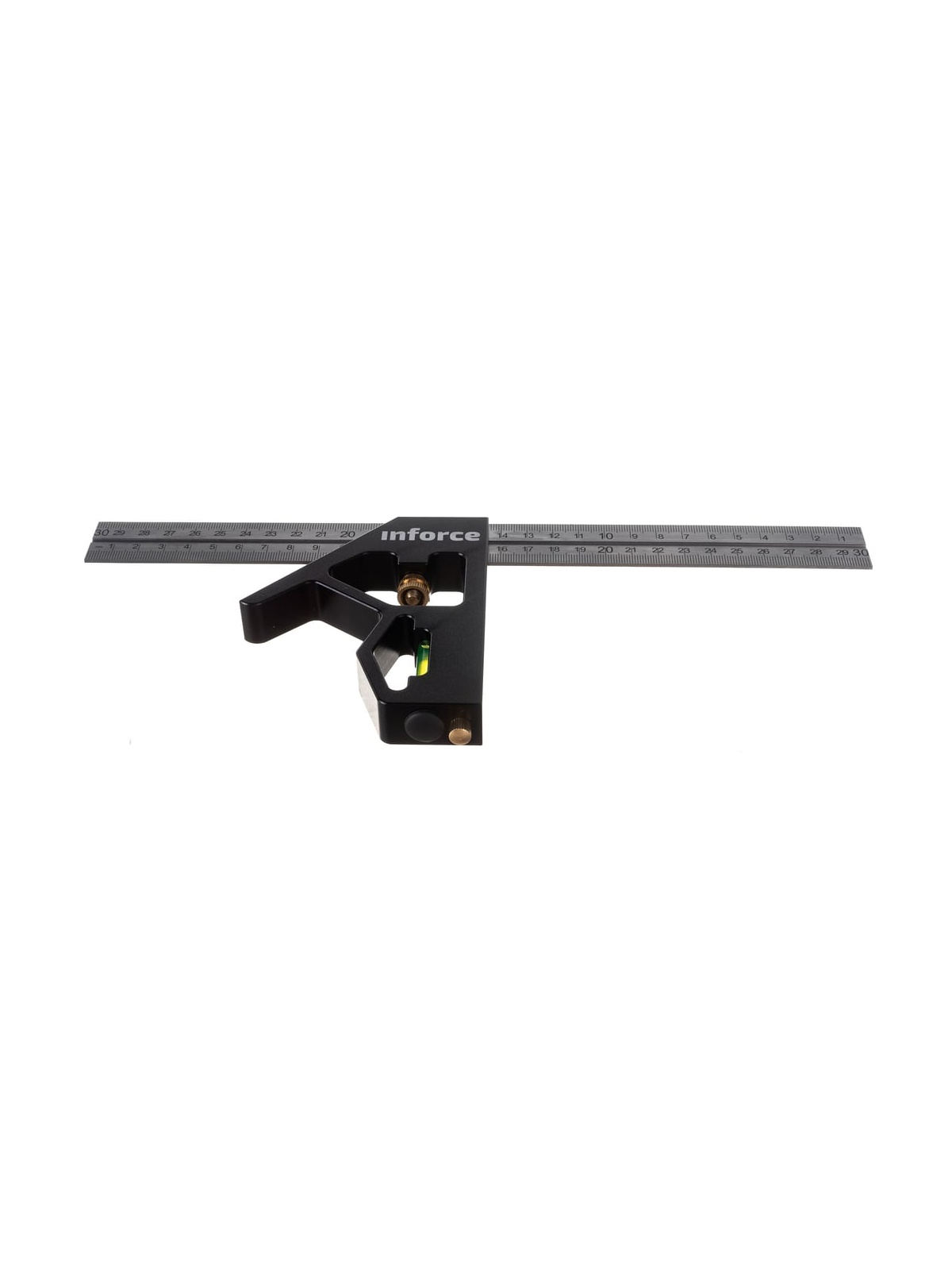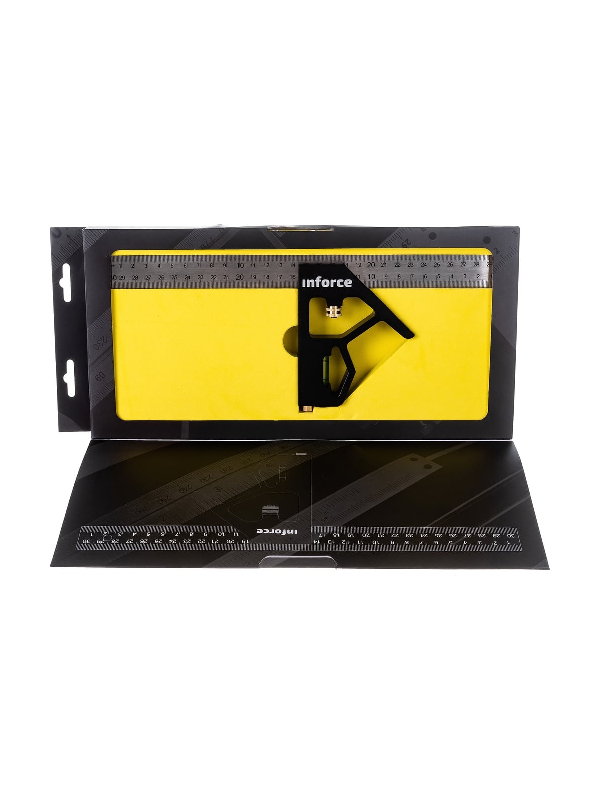 Угольник с уровнем 300 мм Inforce 06-11-67 удобен для откладывания прямых линий, параллельных или перпендикулярных основным направлениям детали. Прочная сталь препятствует изгибанию инструмента, что позволяет сохранить высокую точность измерений. Уровень дополнительно увеличивает качество работы. Внимание! Угольник имеет только сантиметровую разметку, дюймовой разметки нет.