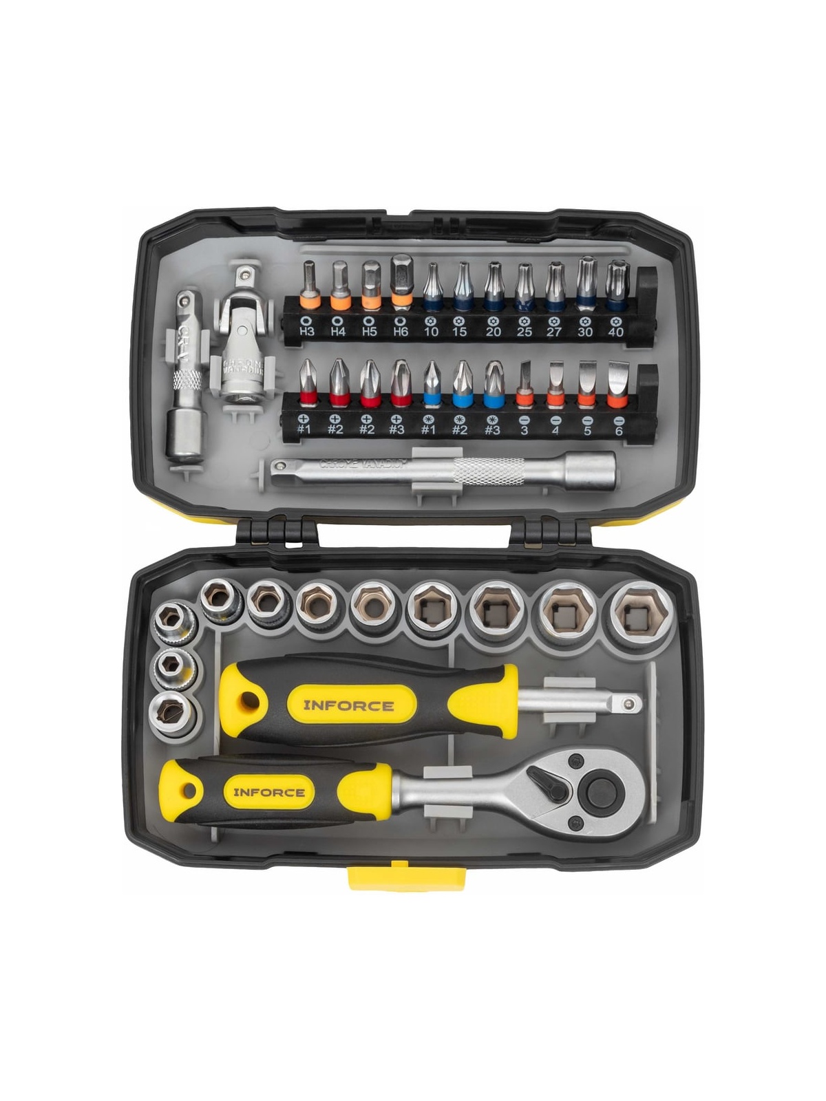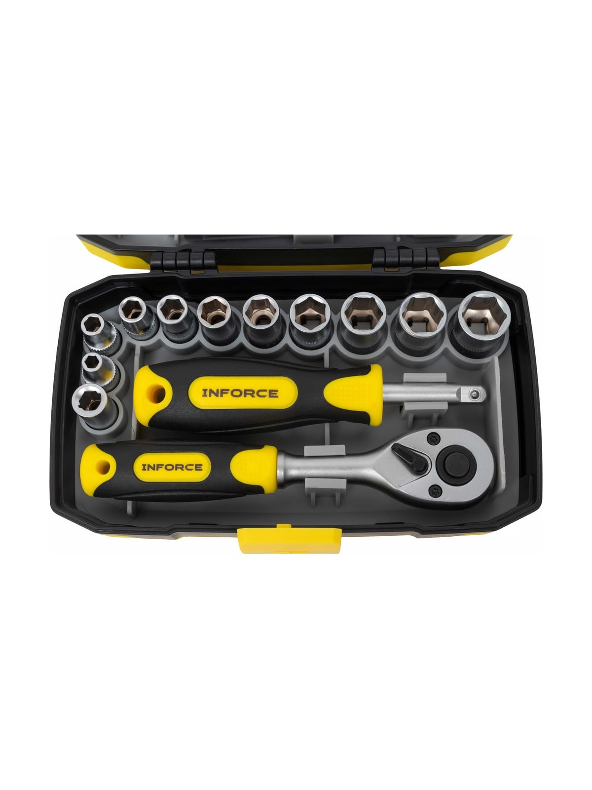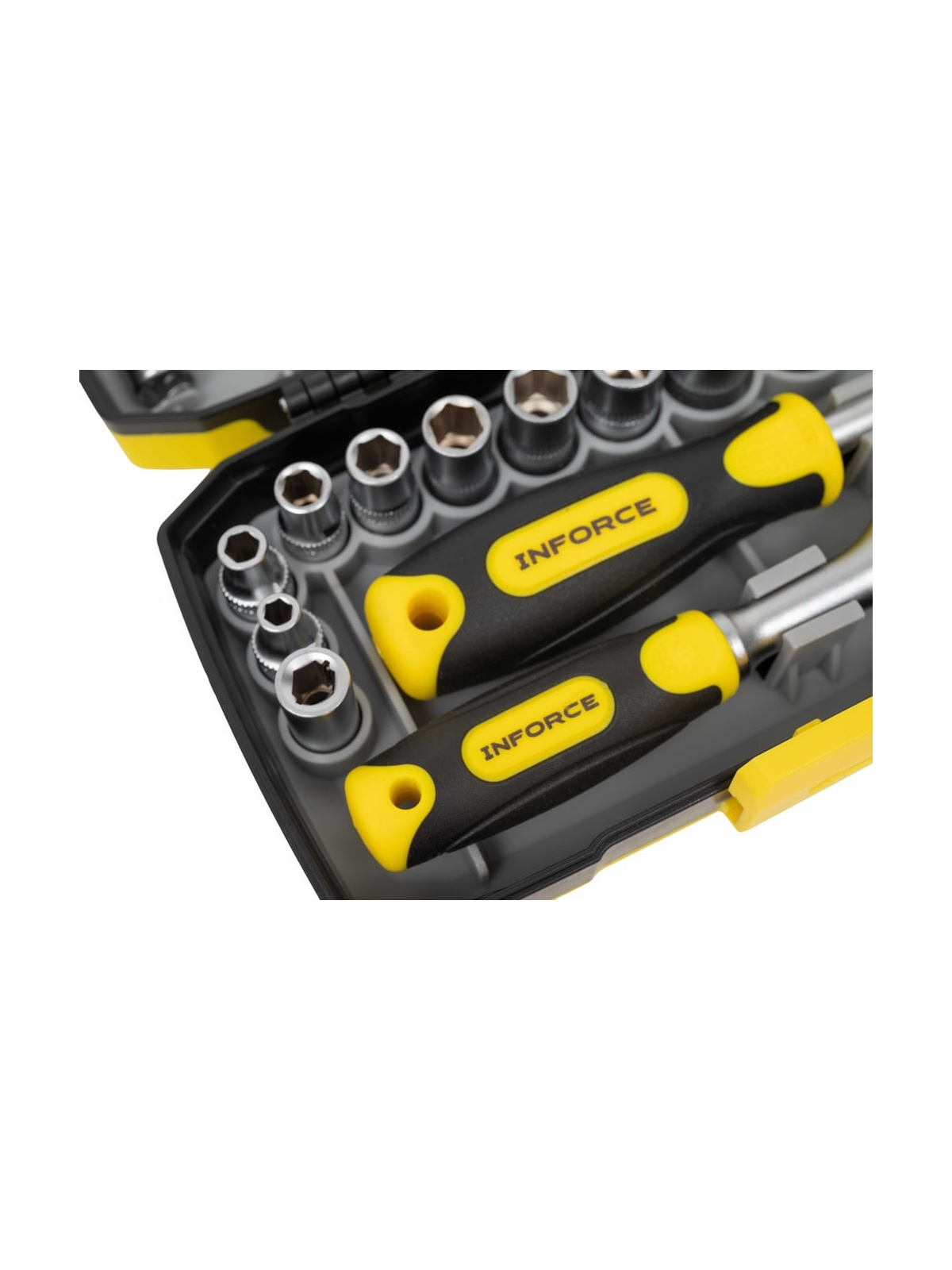 Универсальный набор инструмента Inforce 1/4" 38 предметов 06-25-09 подходит для профессиональных ремонтно-монтажных работ. В комплекте представлены разнообразные инструменты и приспособления для выполнения широкого спектра операций. Все компоненты выполнены из закаленной хромованадиевой стали высокого качества, выдерживают интенсивные нагрузки, имеют большой рабочий ресурс. Хромированные поверхности не подвержены появлению коррозии. Для удобства транспортировки и хранения комплекта предусмотрен закрывающийся футляр.