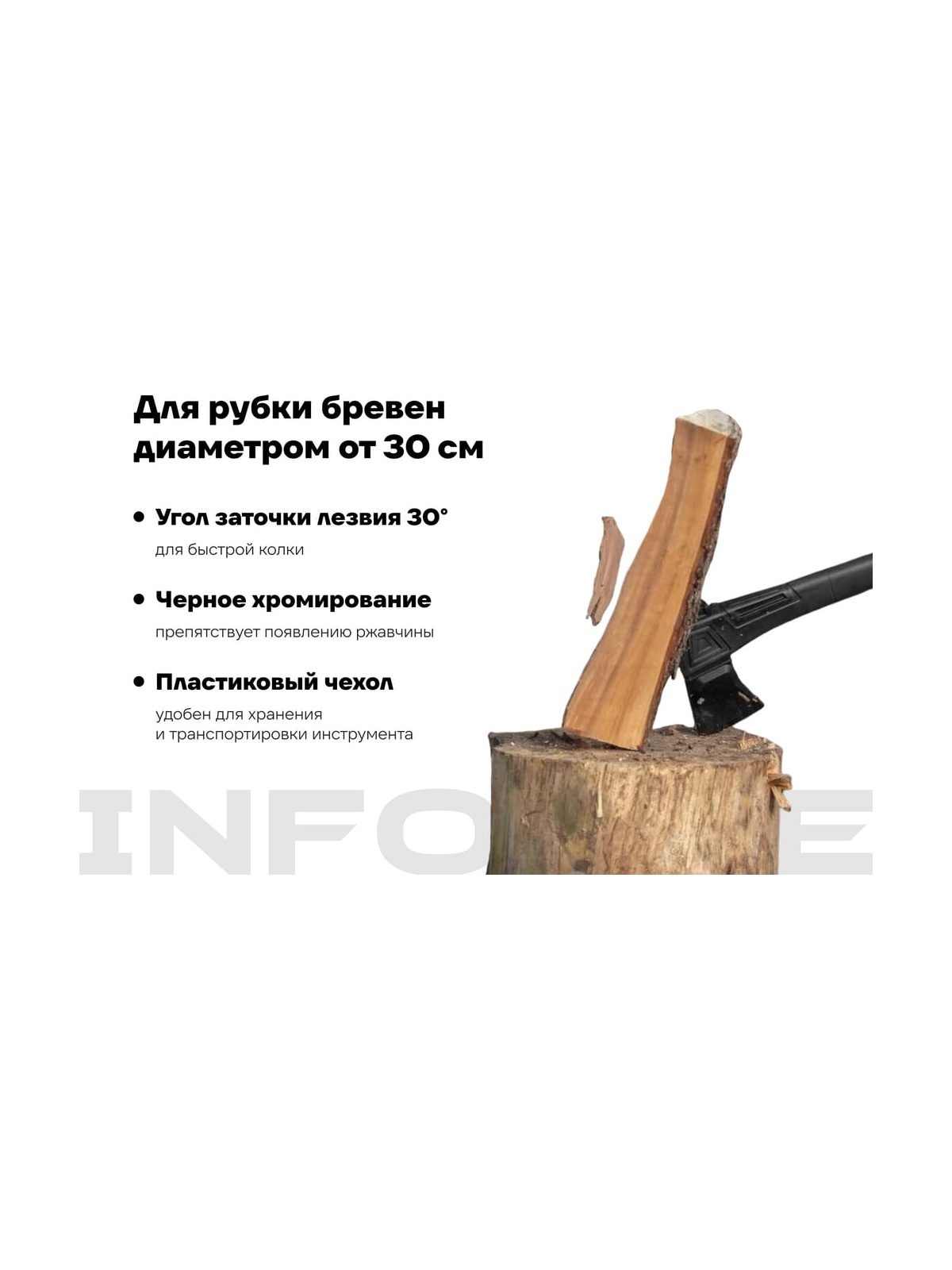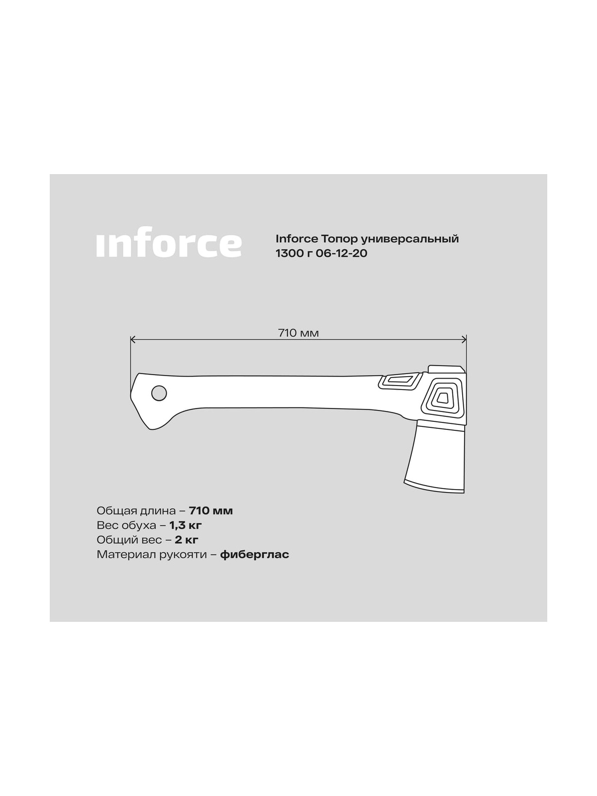 Универсальный топор 1300 г Inforce 06-12-20 обладает значительным весом, что увеличивает энергию удара и позволяет эффективно раскалывать и тесать древесину. Удобная рукоять не скользит в ладонях, что позволяет замахиваться для рубки с максимальной энергией. Надежное соединение обуха и рукояти обеспечивает длительный срок службы. Подойдет для садовых работ. Справится с поленьями до 30 см в диаметре. Другие модели топоров.