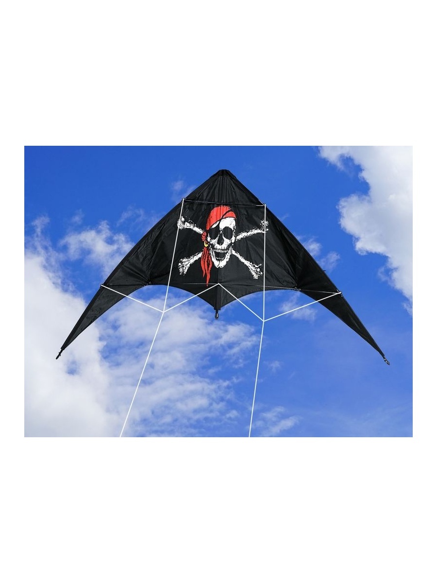 Управляемый скоростной воздушный змей "Пират 140" размером 140х74 см рассчитан на начинающих, но уже имеющих опыт полетов. Воздушный змей укомплектован двумя стропами длиной 30 метров, которые позволяют контролировать полет и осваивать различные фигуры пилотажа.