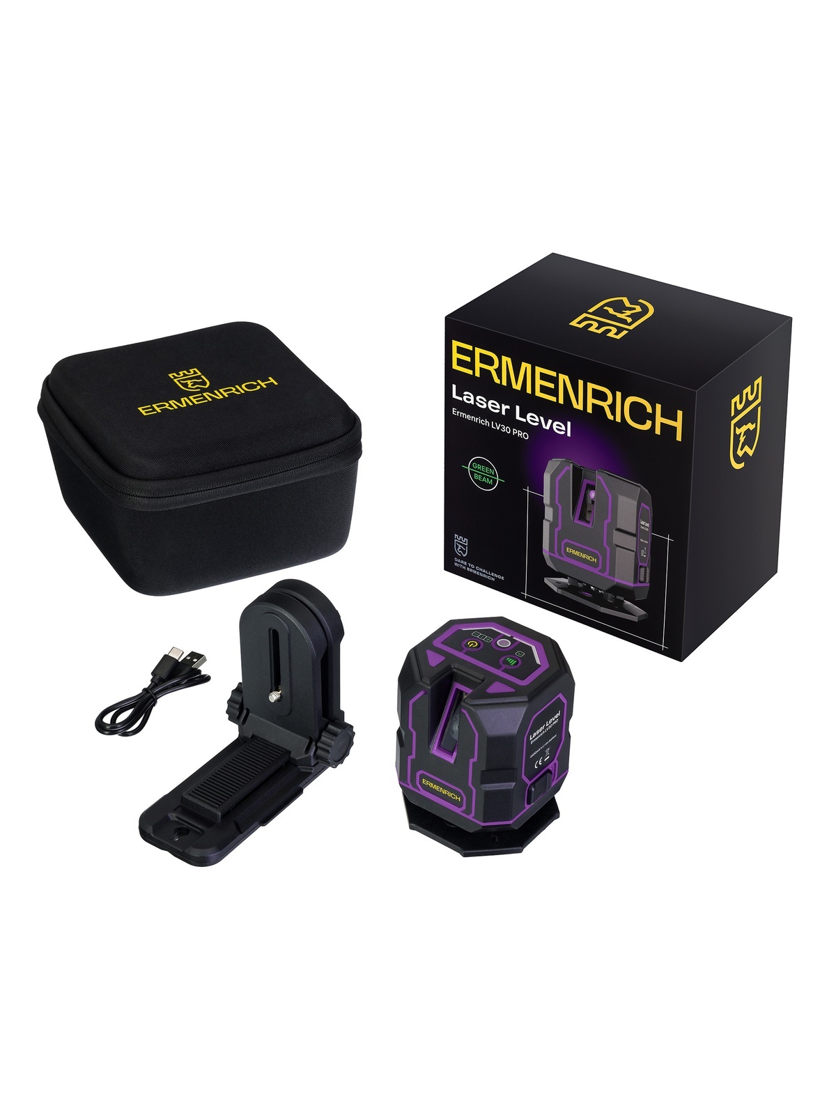 В нивелире PLUS LV30 пользователь найдет для себя технологичный прибор, способный построить разметку из 5 лучей на площади до 30 м. Модель эффективна как для сложных монтажных и строительных работ, так и для небольшого косметического ремонта. Для лазера выбран зеленый цвет как наиболее контрастный на любом фоне, его яркость регулируется в рамках 4 уровней.
