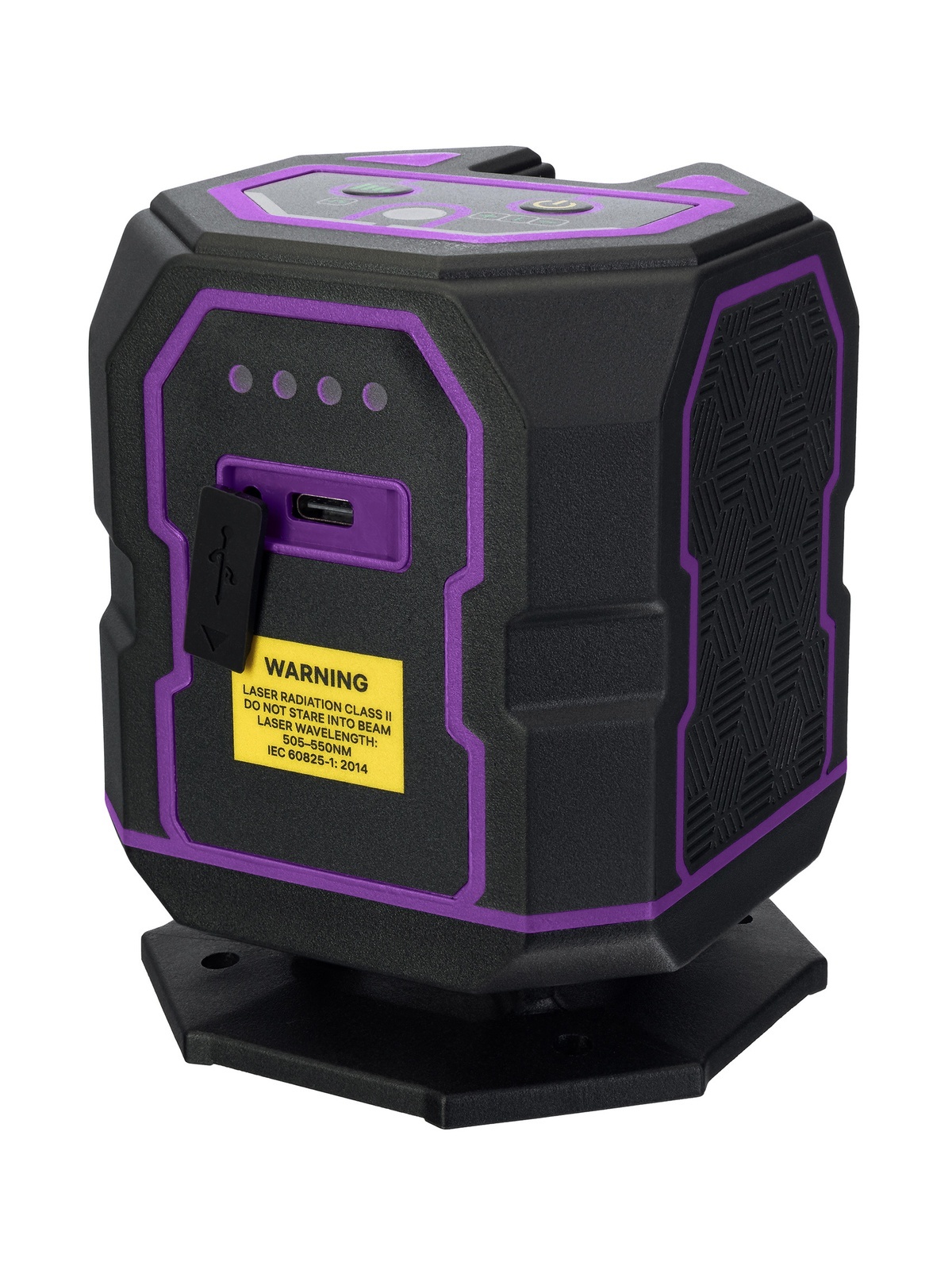 Нивелир оснащен механизмом автовыравнивания при наклоне свыше 4 градусов, при срабатывании которого лучи начинают мигать. С его помощью мастер может быть уверен, что разметка построена с соблюдением необходимых параллелей. Однако если какие-то задачи требуют намеренного построения косых линий, функцию можно отключить.
