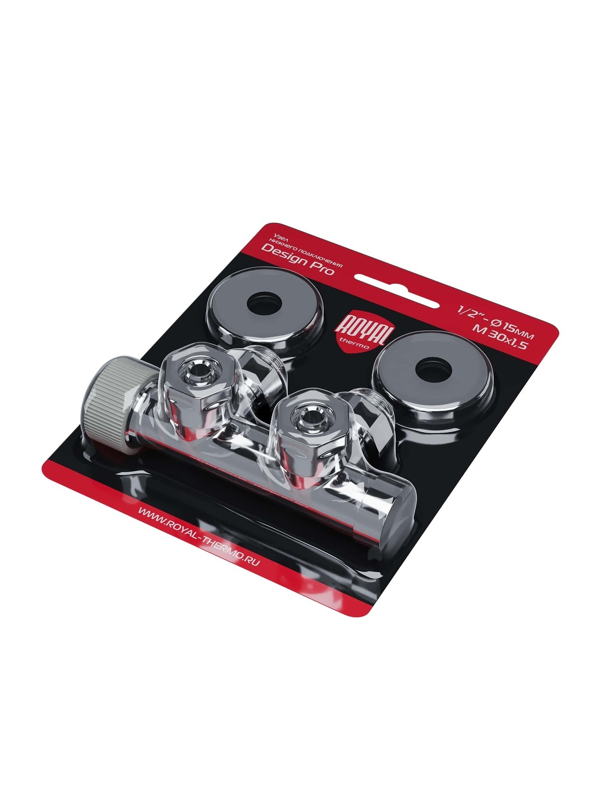 Узел нижнего подключения термостатический угловой Royal Thermo Design Pro 15мм М30х1,5 (Хром)