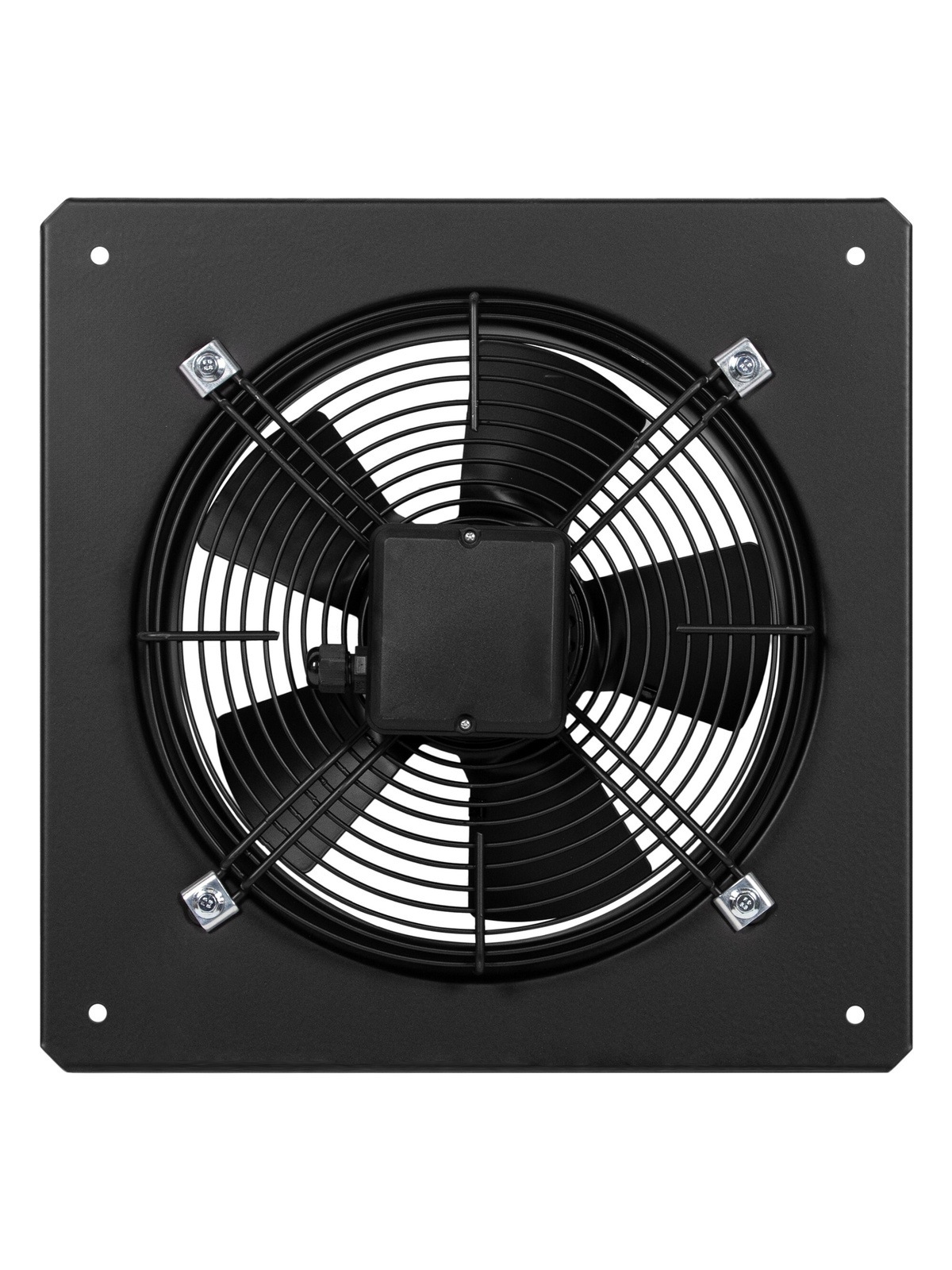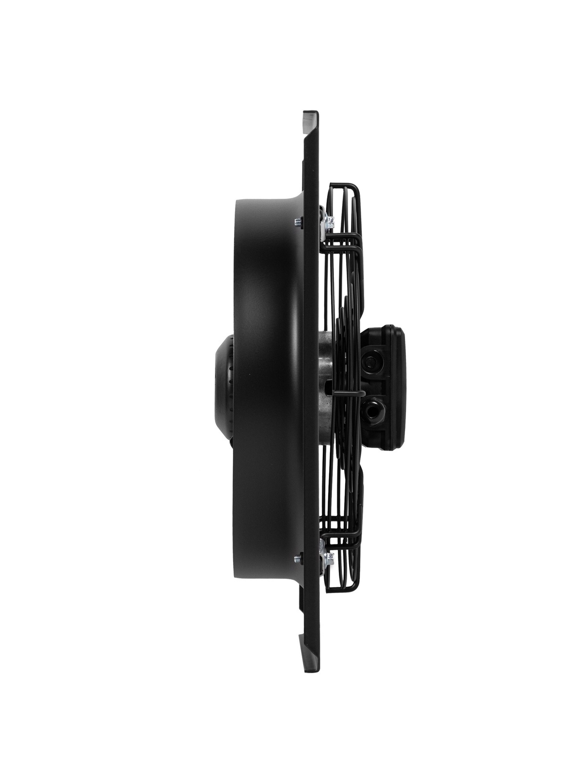 Осевой вентилятор AXW 350-4E оснащен высокоэффективной крыльчаткой с серповидными лопатками, двигателем с внешним ротором и встроенной системой термозащиты.