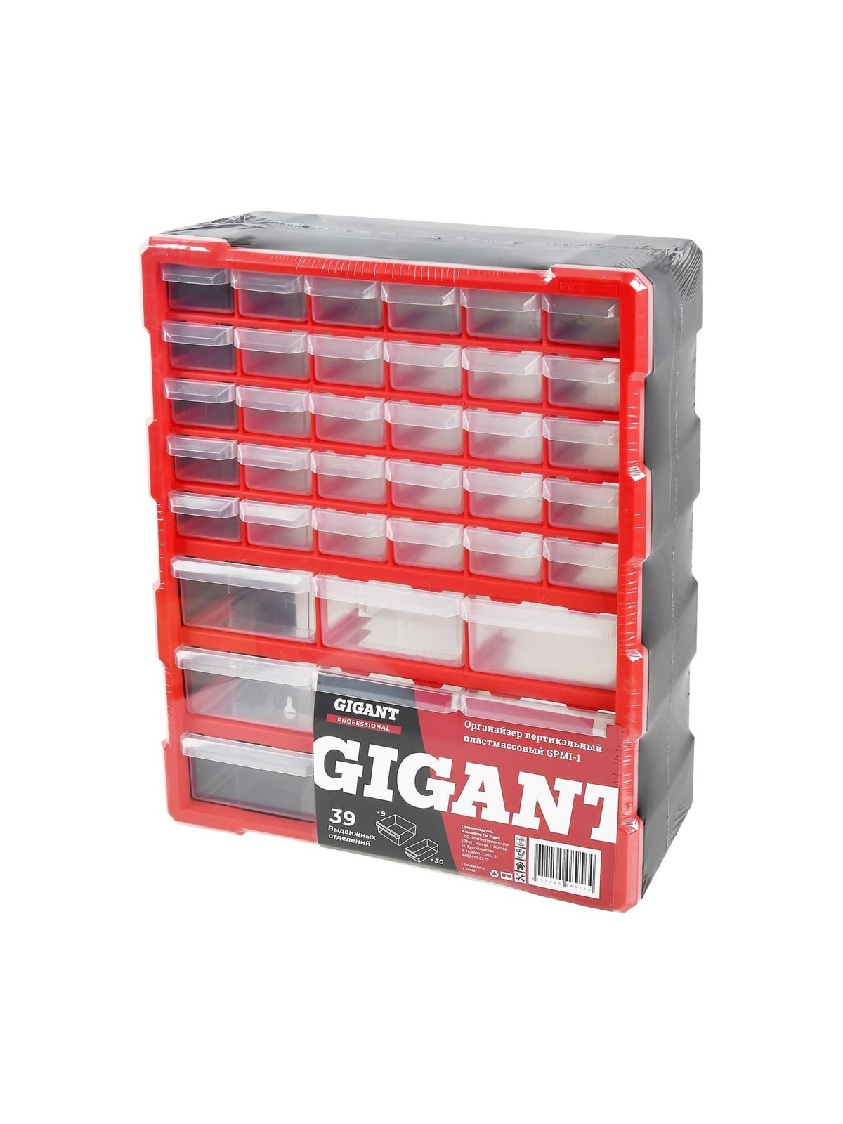 Вертикальный пластмассовый органайзер Gigant Professional GPMI-1 оснащен выдвижными отделениями, что позволяет хранить большое количество крепежа или фурнитуры, не давая ей перемешиваться. Корпус изготовлен из пластика; 39 выдвижных отделений; Вместительная конструкция; Многофункциональность.