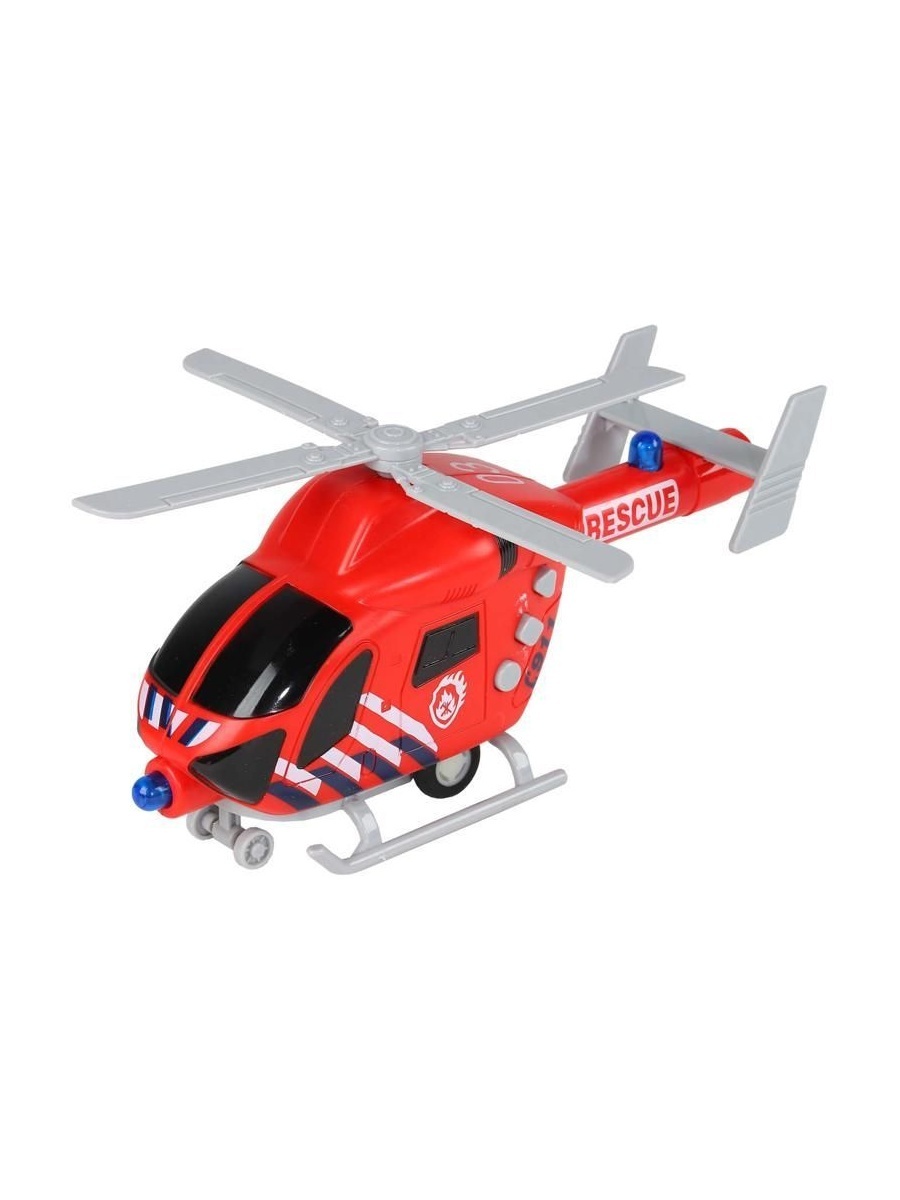 Спасательный вертолёт – это уменьшенная копия настоящей спецтехники с высокой детализацией и качественной покраской всех элементов. На корпусе расположены кнопки, при нажатии на которые воспроизводятся звуковые эффекты и светятся маячки в хвосте и на носу вертолёта.