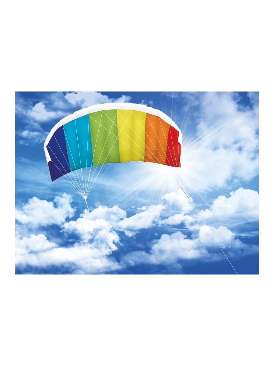 Управляемый воздушный змей в расцветке "Радуга 140" выполнен в виде парашюта размером 140х55 см. Он рассчитан на начинающих, но уже имеющих опыт полетов. Воздушный змей укомплектован двумя стропами длиной 30 метров, которые позволяют контролировать полет и осваивать различные фигуры пилотажа.