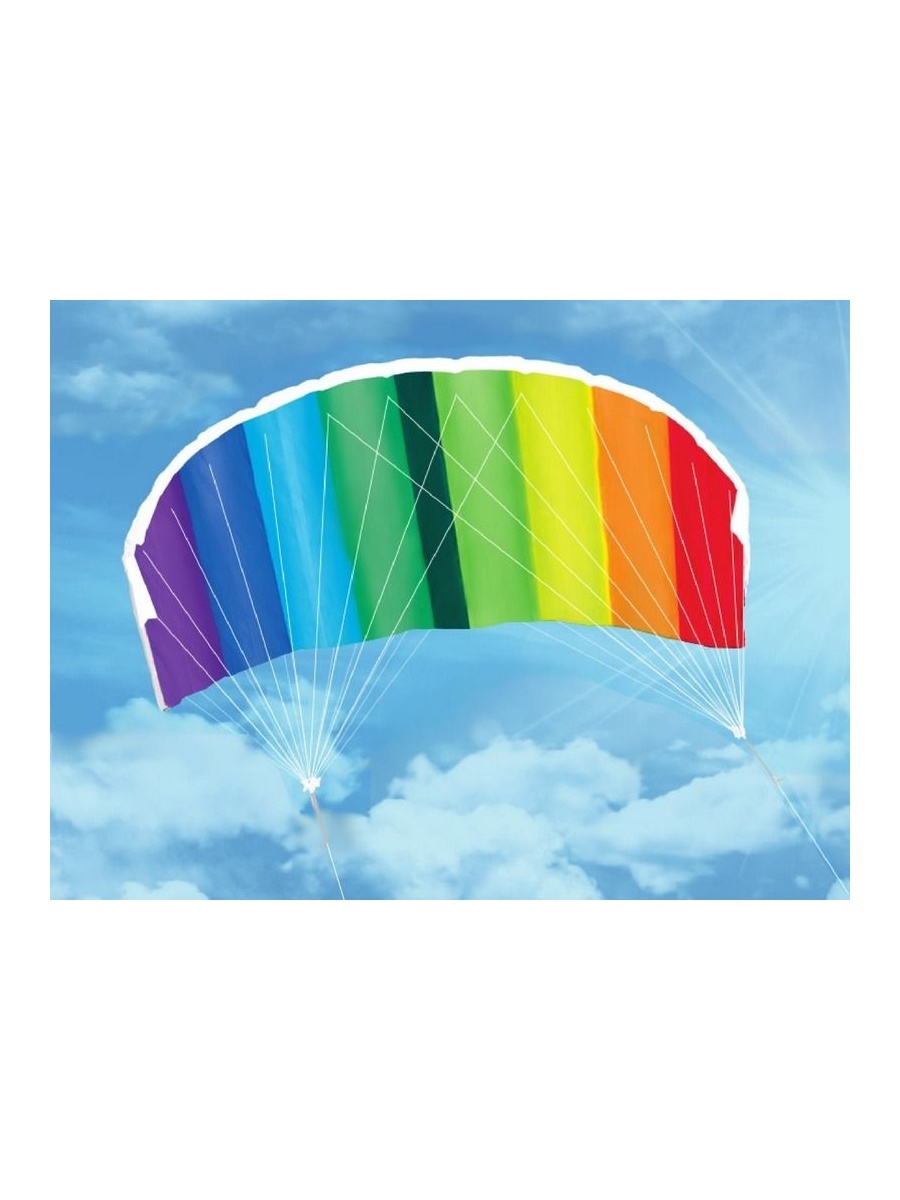 Управляемый воздушный змей в расцветке "Радуга 200" выполнен в виде парашюта размером 200х85 см. Он рассчитан на начинающих, но уже имеющих опыт полетов. Воздушный змей укомплектован двумя стропами длиной 30 метров, которые позволяют контролировать полет и осваивать различные фигуры пилотажа.
