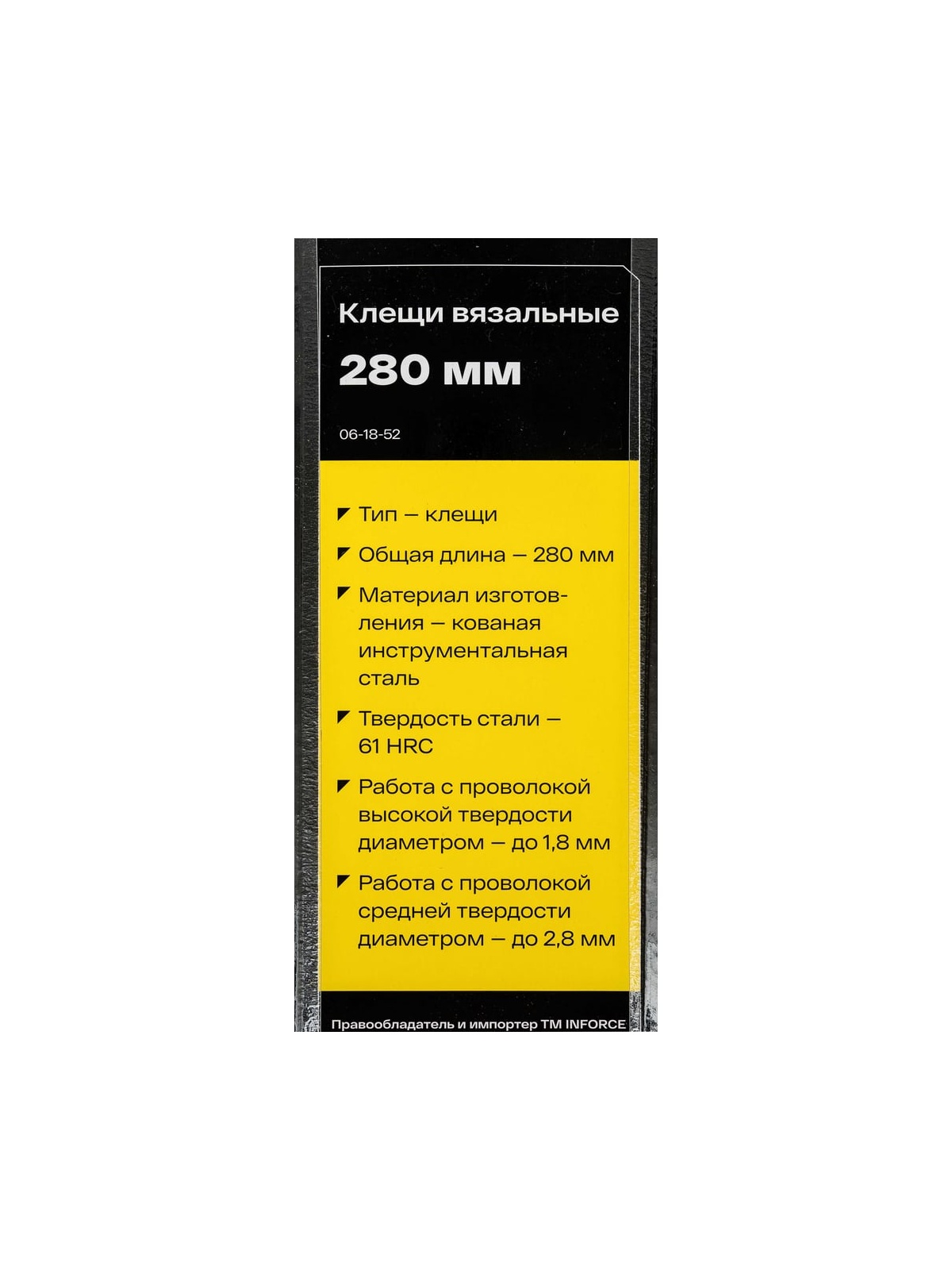 Вязальные клещи Inforce 280 мм 06-18-52 используются для работы с прутками диаметром от 1,8 мм до 2,8 мм. Их общая длина составляет 280 мм, что обеспечивает удобство в использовании и позволяет эффективно выполнять задачи по вязке.